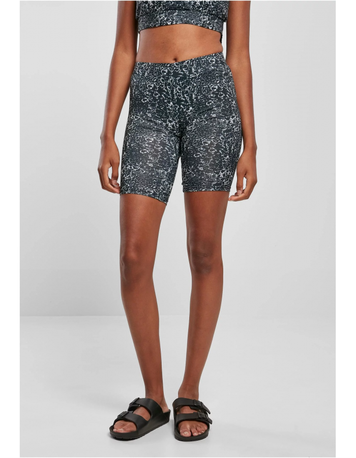 Tyto dámské cyklistické šortky s celoplošným vzorem kravaty v zavedené podobě mají skvělou postavu. Látka je vyrobena z pohodlného strečového žerzeje a nabízí úzký střih. Díky vysokému a širokému elastickému pasu poskytují sportovní cyklistické šortky ideální komfort nošení a končí nad koleny.