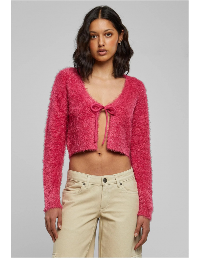 Dámský svetr se zavázaným ostříhaným peřím hibiskuspink L