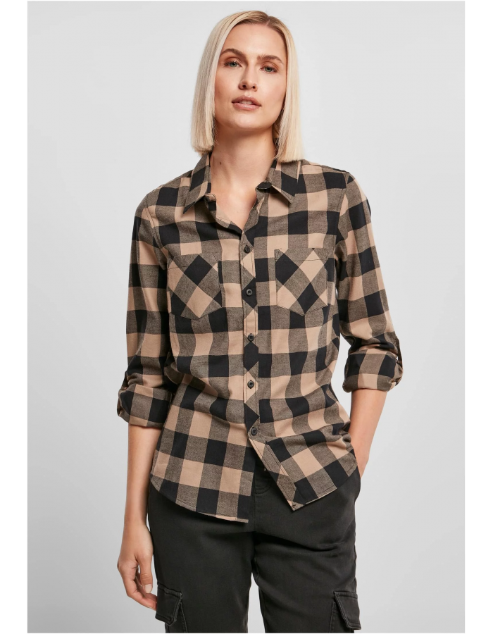 Ladies Turnup Checked Flanell Shirt black/softtaupe