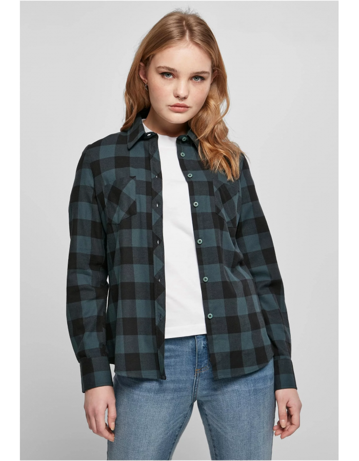 Dámská károvaná flanelová košile od URBAN CLASSICS je výrazným kouskem pro kárované vzory a bavlněný flanel. Vyhrnuté rukávy této blůzy s mírným pasem zve k navrhování různých vzhledů.