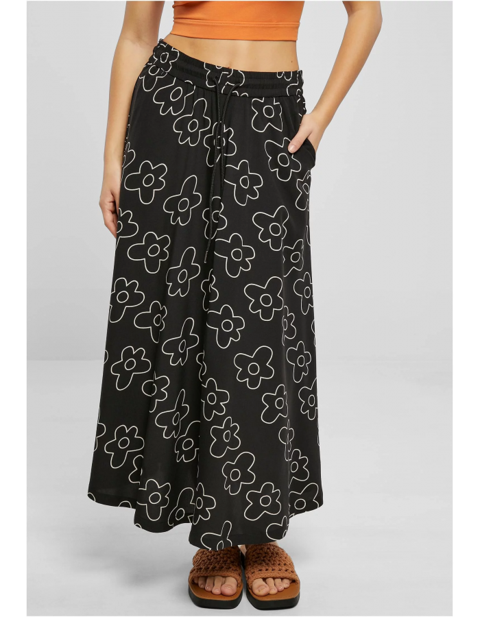 Dámská sukně v květinovém stylu jemně padá po nohách a dosahuje až k lýtkům. Kromě volného střihu nabízí elastický pas s integrovanou stahovací šňůrkou bezpečné a pohodlné nošení. Praktickým detailem jsou boční kapsy. Moderní sukně je vyrobena z hladké, tkané viskózy.