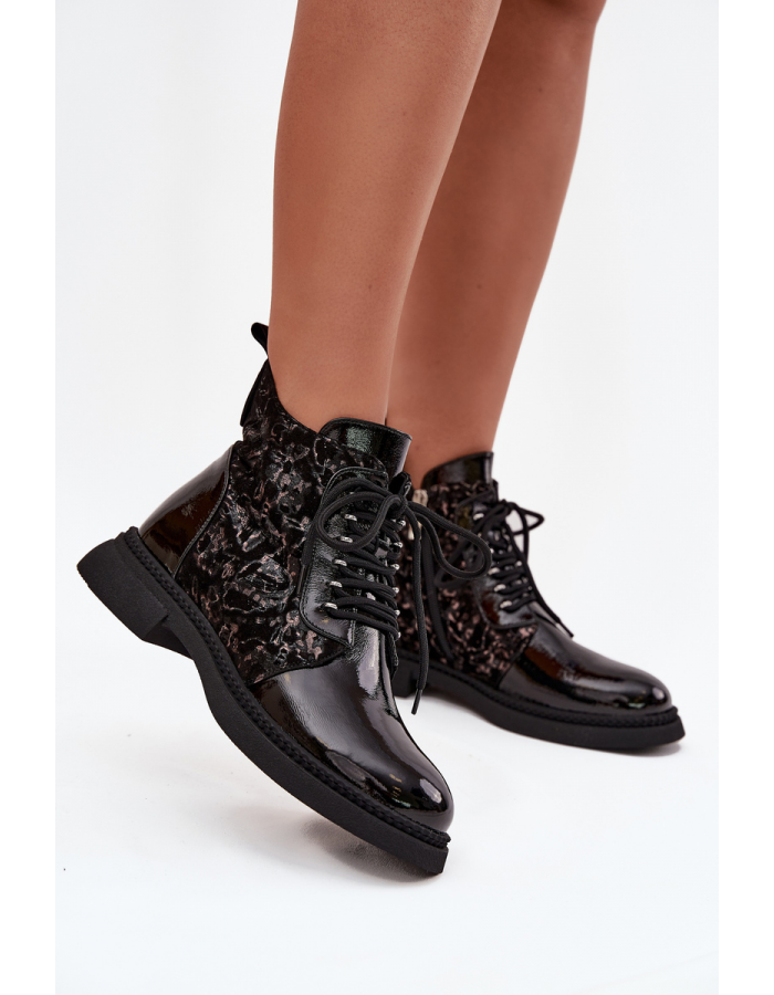 Dámské lakované botky D&A jsou ideální volbou pro chladnější počasí. Model je zateplený, což zajišťuje pohodlí a teplo během nošení. Botky mají elegantní lakovaný povrch, který dodává moderní a stylový vzhled. Praktický zip umožňuje snadné nazouvání a sundávání. Zaoblená špička zajišťuje klasický a univerzální vzhled. Polstrovaná stélka zvyšuje komfort při každodenním nošení.