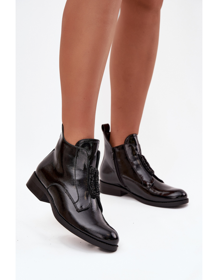 Dámské lakierowane botky S.Barski kombinují styl a pohodlí. Botky jsou zateplené, což zajišťuje teplo a komfort při chladnějším počasí. Model je vybaven zipem, který usnadňuje nazouvání a sundávání, a ozdobným detailem na cholevce, který dodává botám módní a elegantní vzhled. Zaoblená špička poskytuje klasický a univerzální charakter. Polstrovaná stélka zajišťuje příjemné nošení po celý den, zatímco nízký podpatek či plochá podrážka poskytují stabilitu.