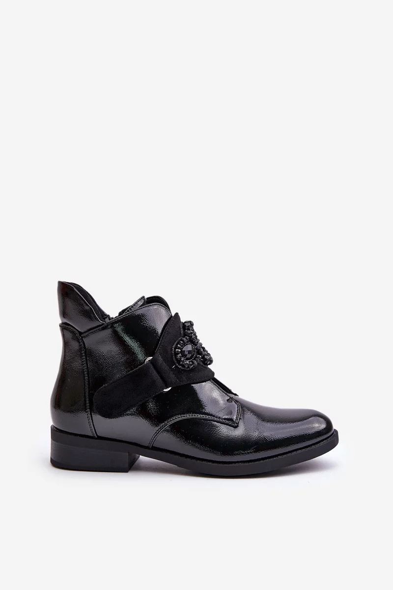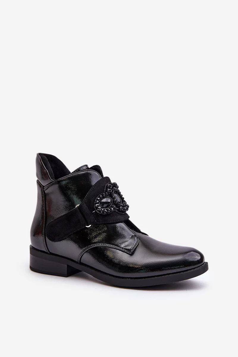 Barské židle vyrobené z eko kůže. Osazené na plochém podpatku, který zaručuje stabilitu při chůzi. Vnitřek zateplený příjemnou obuvnickou dekou, což zajišťuje komfort v chladnějších dnech. Boty mají zaoblené špičky, zpevněnou patu a zapínání na zip. Svršek sahá nad kotník a přední část zdobí elegantní detail. Při výběru velikosti se prosím řiďte tabulkou velikostí.