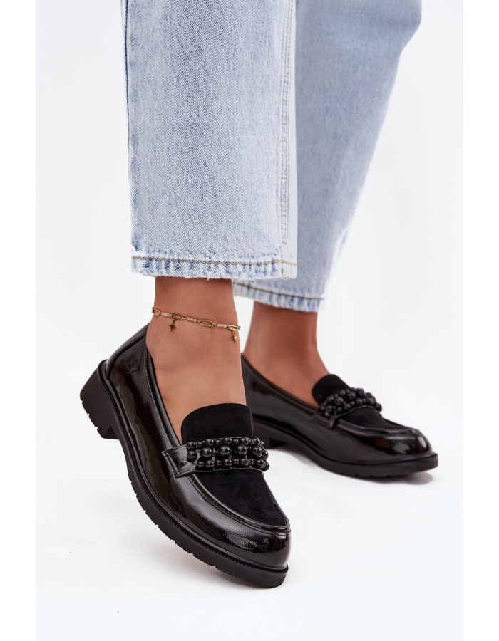 Stylové dámské mokasíny S.Barski z lakované eko kůže v černém provedení zdobí jemné korálky, které dodávají obuvi výrazný a elegantní akcent. Měkký a pohodlný materiál spolu s klasickým střihem mokasín zajišťuje komfort při celodenním nošení. Tento model je ideální pro ženy, které chtějí spojit módní vzhled s každodenní praktičností.