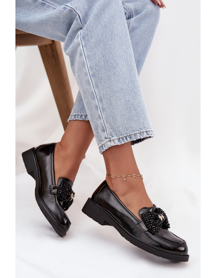 Stylové dámské mokasíny S.Barski z lakované eko kůže v černém provedení zdobí elegantní mašle, která dodává botám jemný a sofistikovaný vzhled. Měkký a pohodlný materiál spolu s klasickým střihem mokasín zajišťuje komfort při celodenním nošení. Tento model je vhodný pro každodenní nošení i formálnější příležitosti.