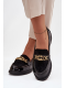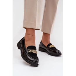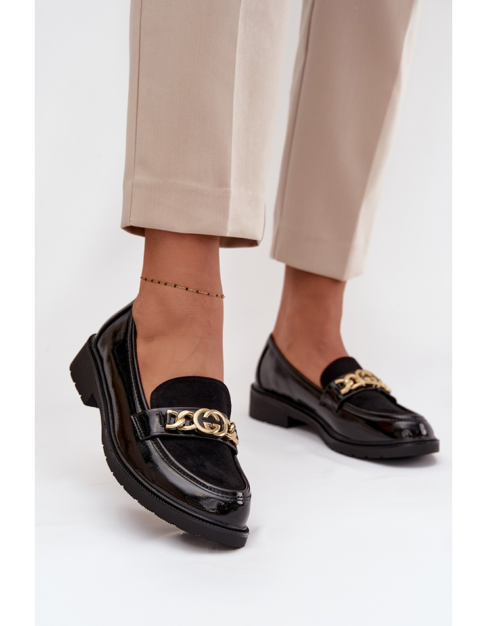 Lakované dámské mokasíny se zlatou ozdobou S.Barski – černé Velikost: 38