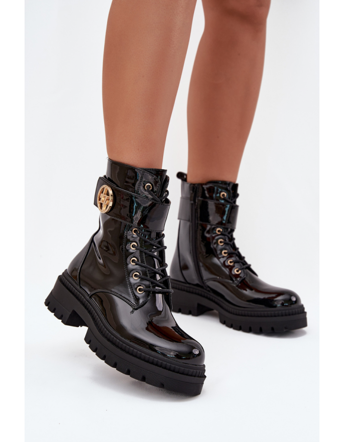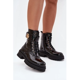 Dámské boty typu workery vyrobené z eko kůže. Na platformě a nízkém podpatku poskytují pohodlí a stabilitu při každém kroku.