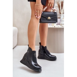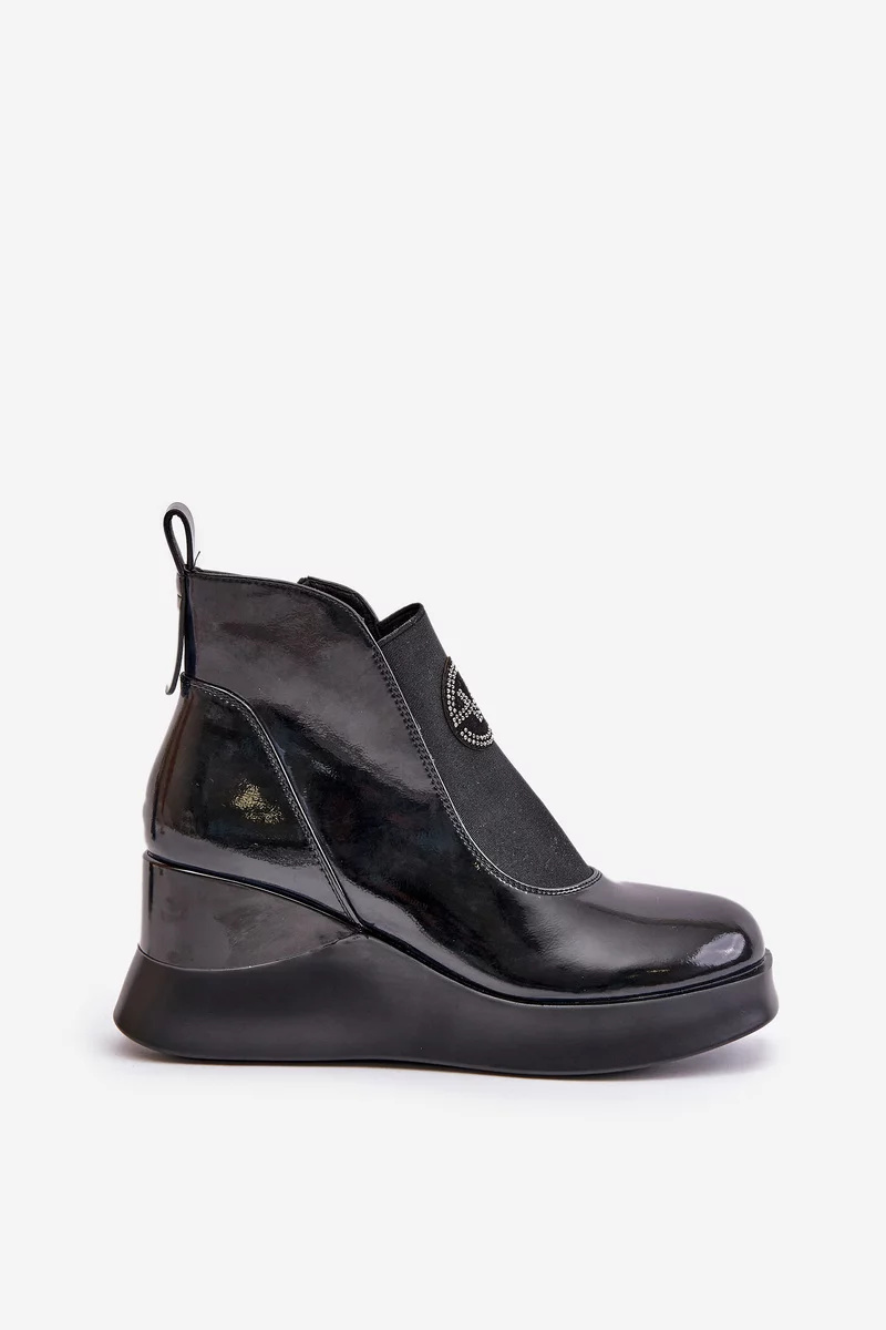 Umístěné na klínku a platformě. Zapínání na zip z boku. Na svršku elastická vsadka a malé zdobení. Zaoblené špičky. Střed zateplený obuvnickou dekou. Model ten je ideální volbou pro ženy, které hledají módní a zároveň pohodlné boty na každý den! Při výběru velikosti se prosím řiďte tabulkou velikostí.