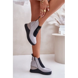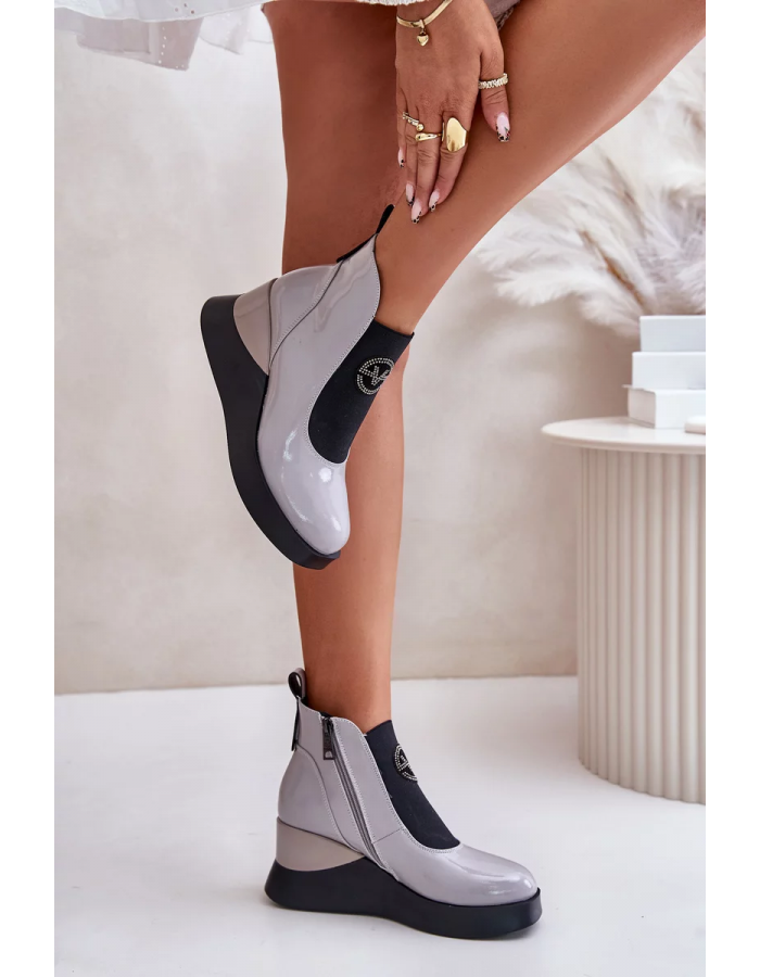 Lakované Kotníkové Boty Na Klínku Zateplené Vinceza Šedé Velikost: 39