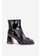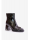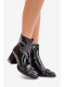 Dámské kotníkové boty vyrobené z lakované eko kůže jsou stylovou volbou na chladnější dny. Zabudované na stabilním podpatku typu sloupek, dodávají postavě eleganci a moderní vzhled. Model má čtvercové špičky a ozdoba vpředu zdůrazňuje módní charakter. Zateplené obuvnickou podšívkou, poskytují pohodlí a teplo, a zapínání na zip usnadňuje rychlé obouvání. Ideální pro elegantní a vycházkové stylizace. Při výběru velikosti se prosím řiďte tabulkou velikostí.