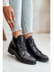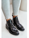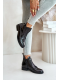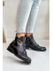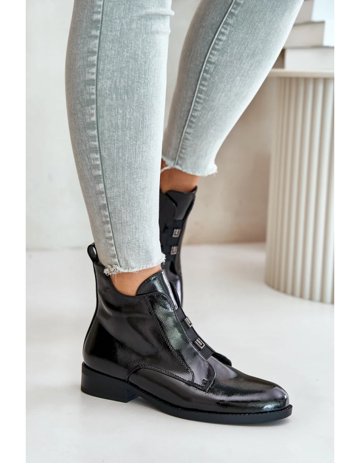 Barské židle vyrobené z eko kůže. Umístěné na plochém podpatku, který zajistí stabilitu při každém kroku. Zapínané na zámek. Střed ohřívaný obuvnickou vložkou. Zaoblené špičky. Ozdobné detaily a gumičky vpředu. Při výběru velikosti se prosím řiďte tabulkou velikostí.