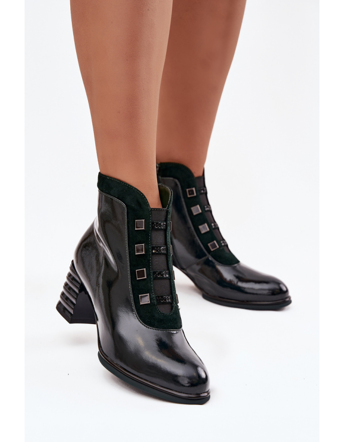 Stylové dámské botky D&A z pravé lakované kůže na středním sloupkovém podpatku jsou ideální pro elegantní i každodenní nošení. Model má zaoblenou špičku a boční zip, který usnadňuje obouvání a zajišťuje pohodlné přizpůsobení noze. Lakovaná kůže dodává botám lesklý, sofistikovaný vzhled a univerzální charakter.