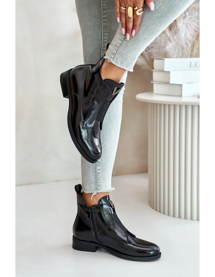 Umístěné na plochém podpatku, který zajistí stabilitu při každém kroku. Střed zateplený obuvnickou dekou. Zaoblené špičky. Zapínané na zámek. Zepředu zdobená, elastická vsadka a malý detail na jazyku. Horní část boty nad kotník. Zpevněná pata. Při výběru velikosti se prosím řiďte tabulkou velikostí.