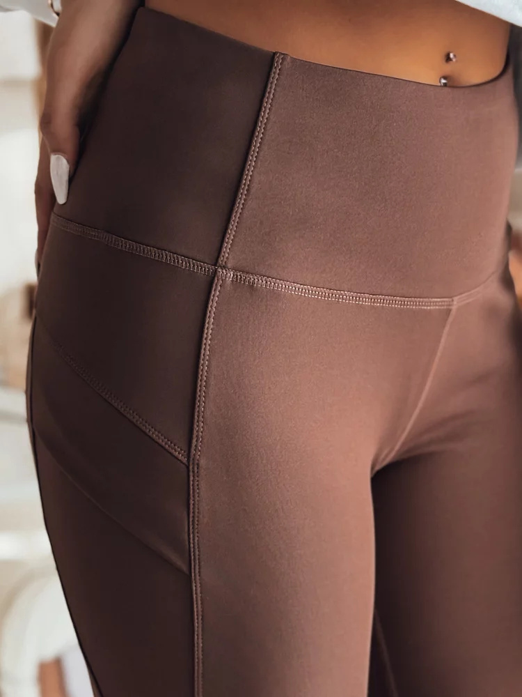 Damskie legginsy o dopasowanym kroju, które świetnie podkreślają sylwetkę i zapewniają maksymalny komfort noszenia. Wysoki stan optycznie wydłuża nogi i subtelnie modeluje talię, a elastyczny materiał dopasowuje się do ciała, gwarantując pełną swobodę ruchu. Dekoracyjne przeszycia po bokach dodają sportowego charakteru. Doskonale sprawdzą się zarówno na co dzień, jak i podczas aktywności fizycznej.