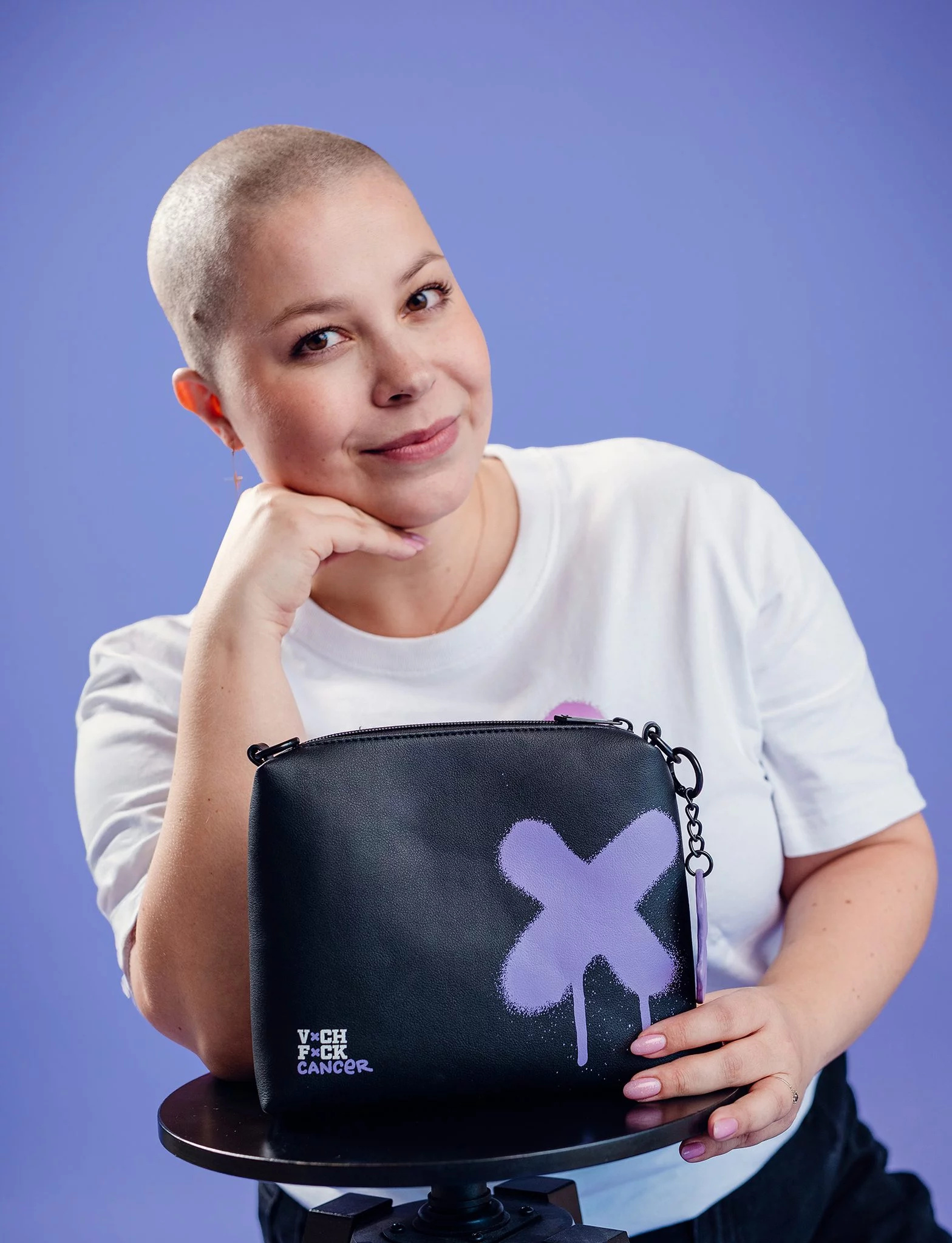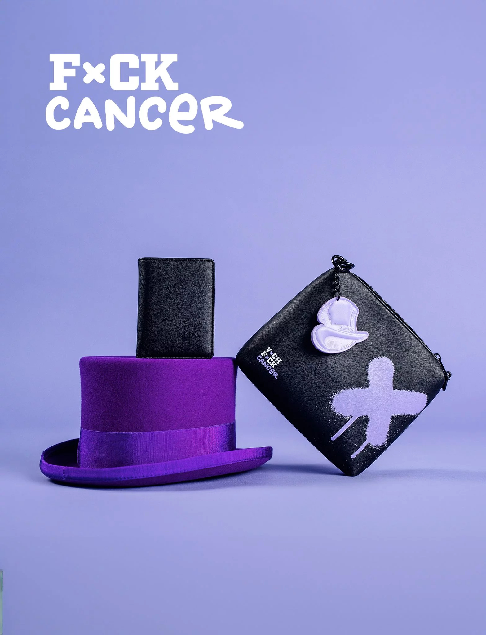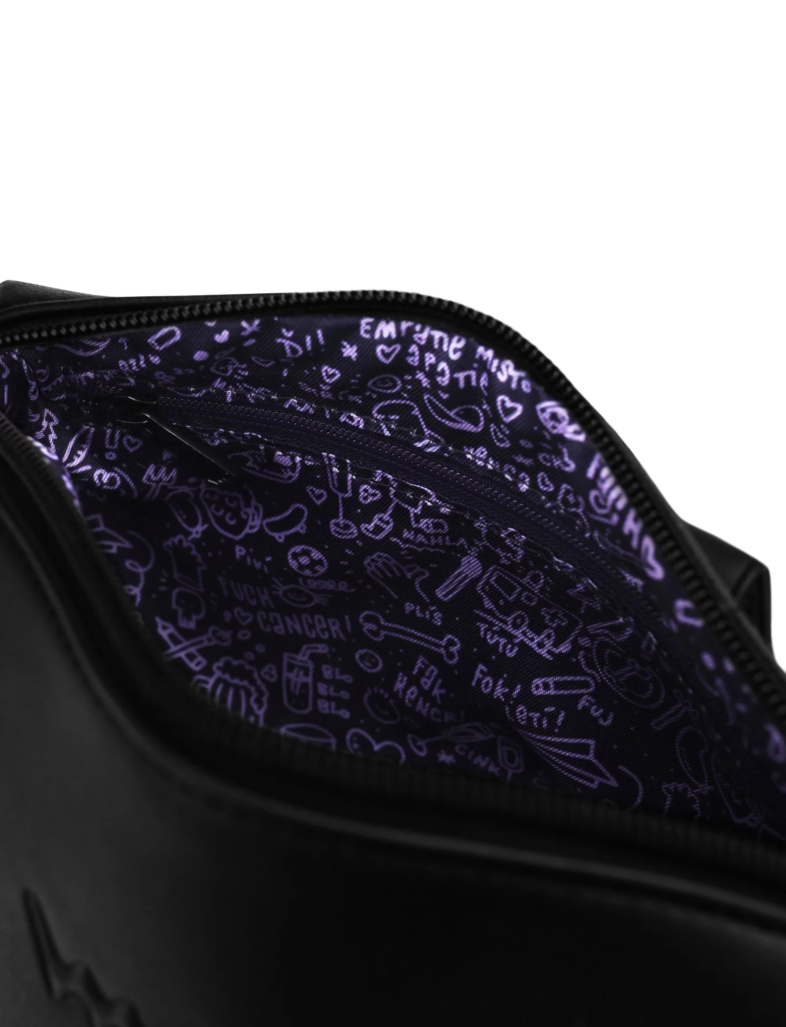 Kabelka Lila Empathy přináší styl s jasným poselstvím. Černý design je doplněn výrazným levandulovým cylindrem a symbolem X, které představují odvahu a empatii pro onkologické pacienty. Uvnitř kabelky na Tebe čeká hravý levandulový potisk, kde se zobrazují všechny symboly spojené s organizací Fuck Cancer. Tento jedinečný doplněk není jen módní, ale zároveň pomáhá šířit empatii a podporu tam, kde je nejvíce potřeba. Zakoupením této kabelky přispíváš organizaci Fuck Cancer v jejich boji proti apatii a na podporu těch, kteří to potřebují.