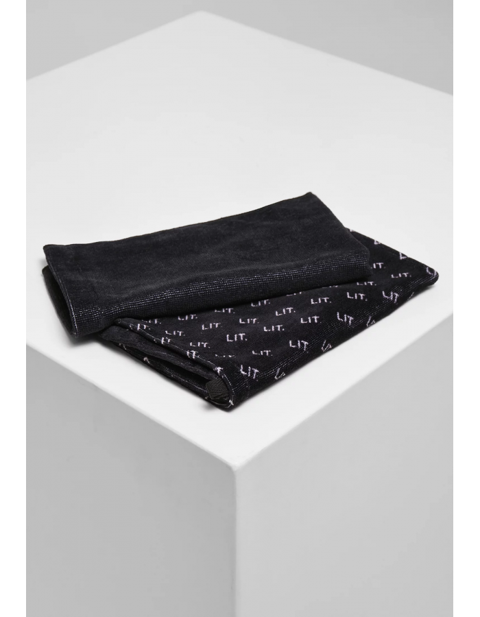 Tato dvojitá sada malých ručníků Mister Tee obsahuje ručníky o rozměrech 25 x 45 centimetrů se samostatnými vzory. Jeden ručník nabízí výrazný jednobarevný černý design, druhý přidává úhlopříčku „LIT.“celoplošný tisk. Zadní strana zůstává bílá. Ručníky jsou vyrobeny ze silné savé bavlny.