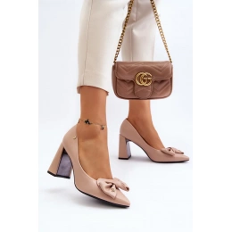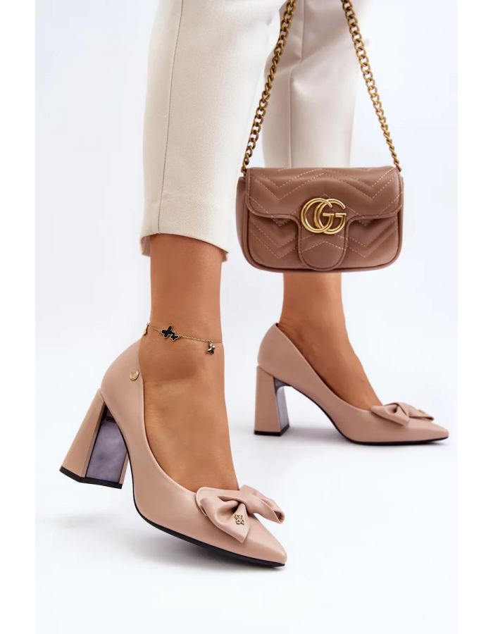 Elegantní lodičky se stabilním blokovým podpatkem jsou perfektní volbou pro mnoho příležitostí. Vyrobeny s důrazem na detail, mají měkkou a pohodlnou vložku z přírodní kůže, která zajistí pohodlí i při dlouhodobém nošení. Jejich špičaté špičky dodávají styl a jemný emblém po stranách svršku jim dodává sofistikovaný charakter. Přední strana zdobená mašlí. Tento model skvěle doplní každodenní i elegantní styly! Při výběru velikosti se řiďte tabulkou velikostí.