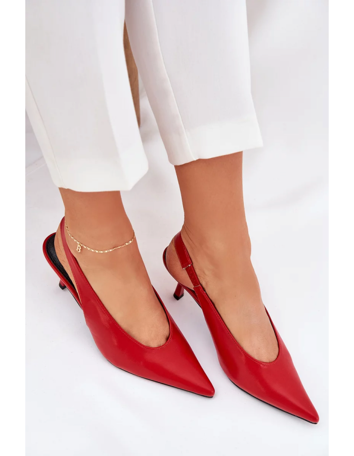 Elegantní dámské lodičky Aricandia v červeném provedení z eko kůže kombinují moderní design, pohodlí a ženský vzhled. Otevřená pata dodává botám lehkost a sofistikovaný šmrnc, zatímco střední podpatek prodlužuje nohy a zajišťuje pohodlné nošení. Ideální volba pro ženy, které chtějí výraznou a stylovou obuv na společenské i každodenní příležitosti.