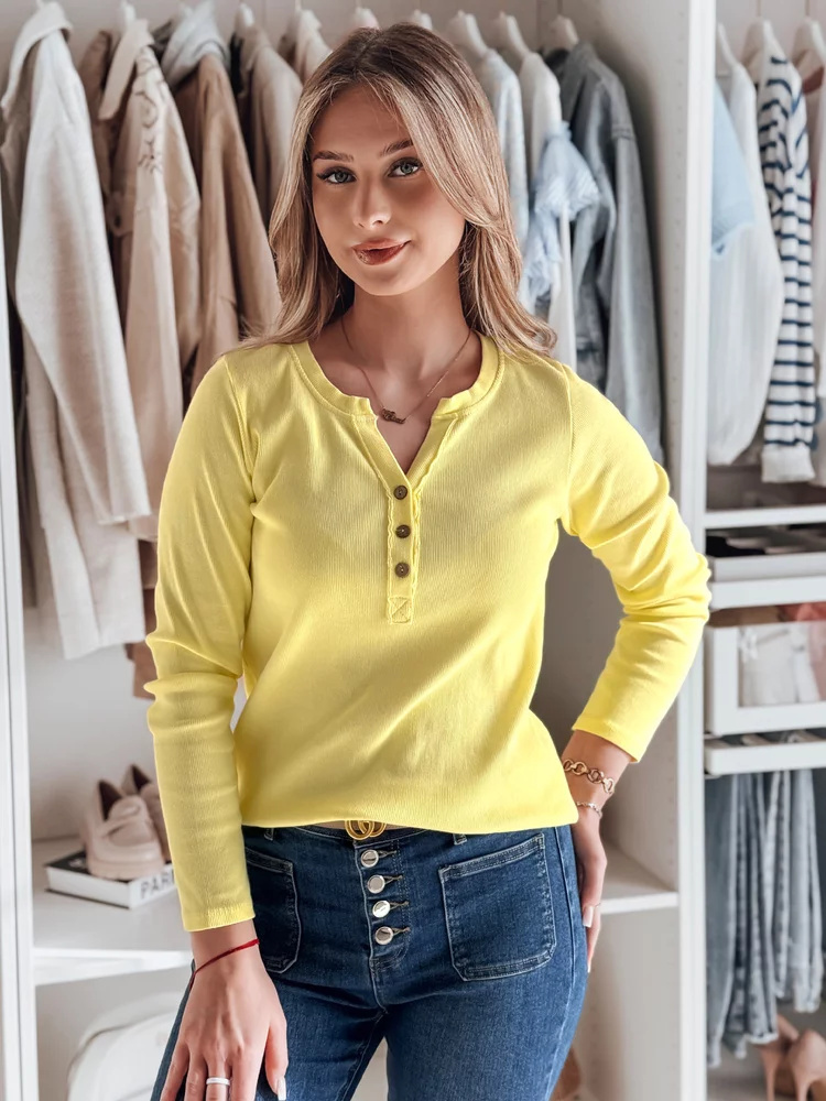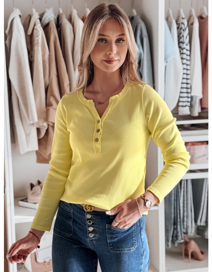 Long sleeve damski z ozdobnym zapięciem na guziki przy dekolcie. Elastyczna tkanina podkreśla figurę, jednocześnie gwarantując wygodę na co dzień. Uniwersalny rozmiar pasuje od XS do L. Idealny wybór do jeansów, spódnic czy spodni materiałowych. Prosty, ale stylowy fason sprawia, że pasuje na każdą okazję.