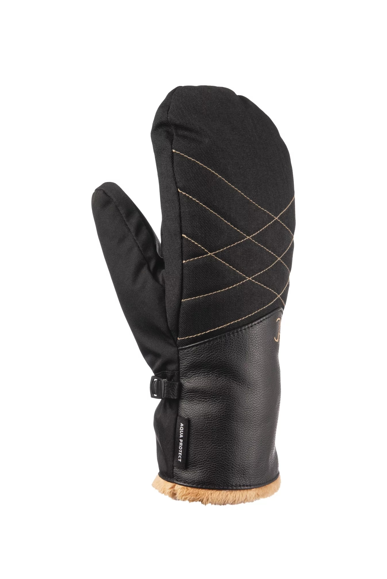 Women's mittens FROST bring extra warm comfort thanks to the modern SOFT PLATIN material, warm filling SOFT LOFT made of thermoregulatory material and highly durable and soft real leather on the palm and back of the glove. AQUA PROTECT membrane guarantees water resistance min. 10000 mm and at the same time breathability min. 6000 g / m2 / 24h and perfectly protects against moisture even in the most demanding winter conditions.