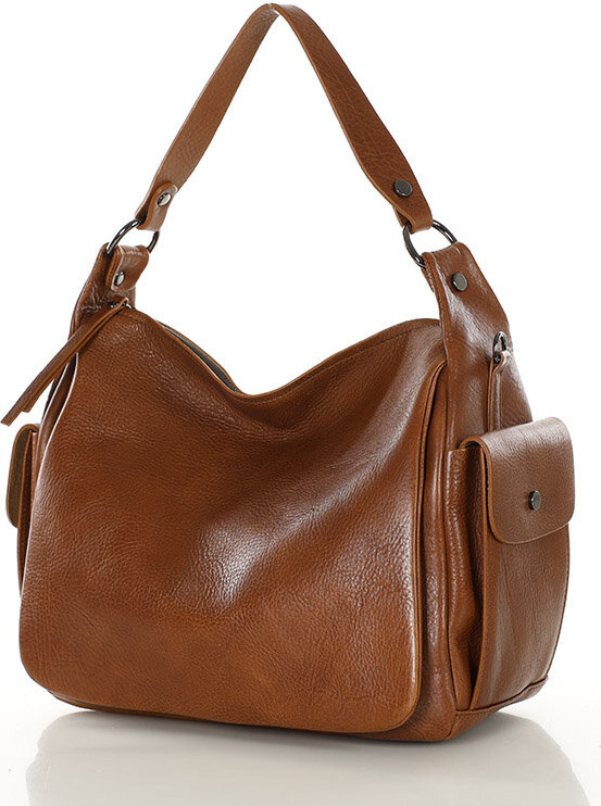 MARCO MAZZINI Hnědá dámská kožená hobo kabelka