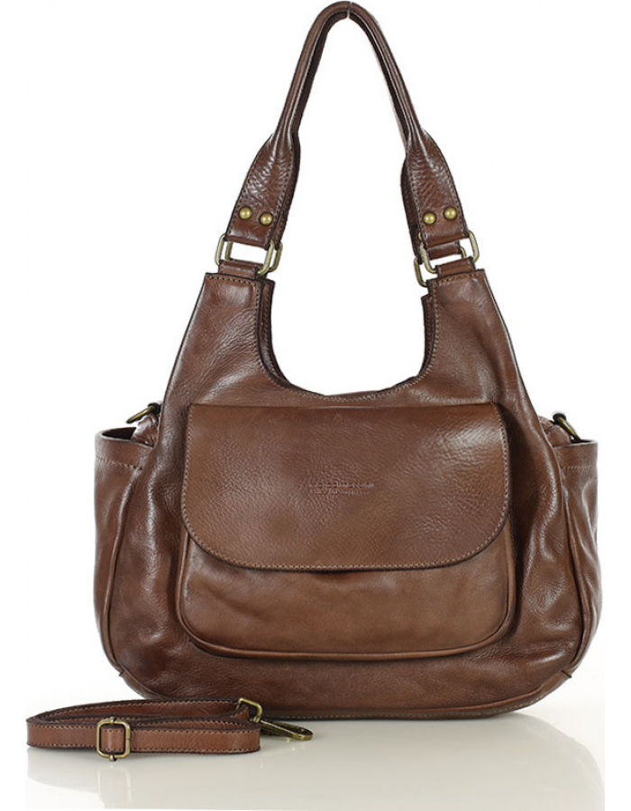 MARCO MAZZINI Hnědá dámská kožená hobo kabelka