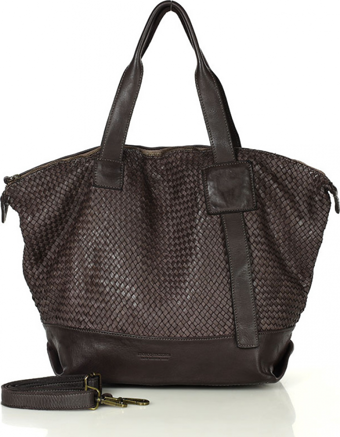 Marco Mazzini Tmavě hnědá dámská kožená shopper kabelka