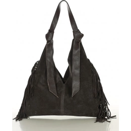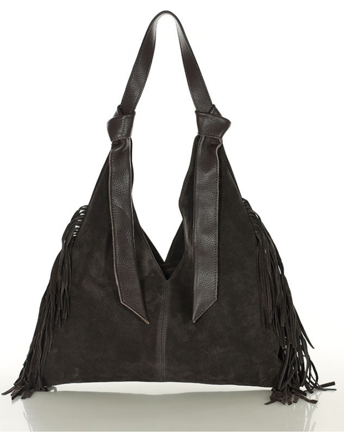 MARCO MAZZINI Tmavě hnědá semišová shopper kabelka s třásněmi