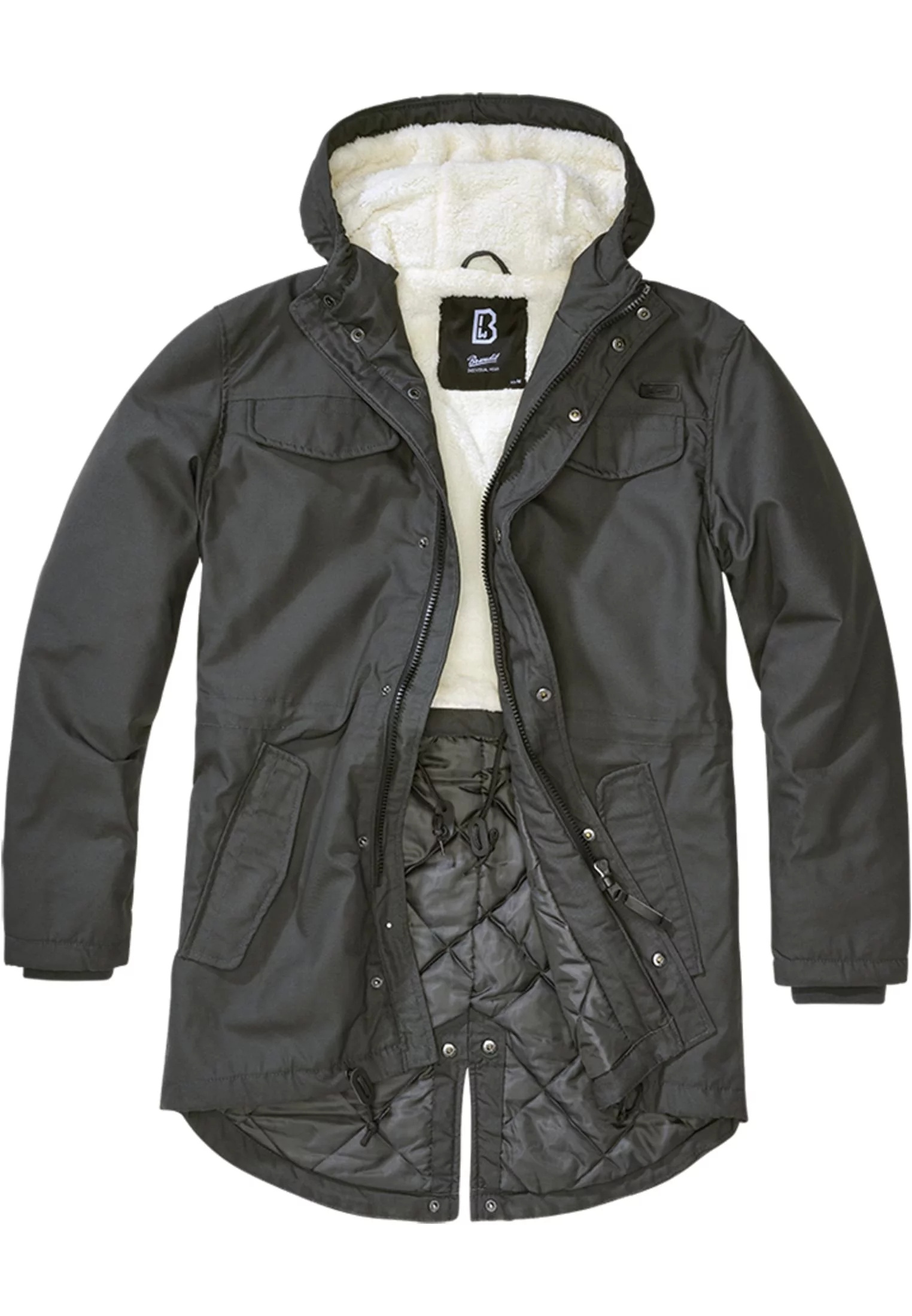 Vítr. Počasí. Styl. Tato vysoce kvalitní parka s rybím ocasem má prošívanou podšívku v kombinaci s plyšovým kožíškem. Stahovací šňůrka v pase umožňuje různé styly. Parku doplňují četné kapsy a aplikace z vysoce kvalitní syntetické kůže.