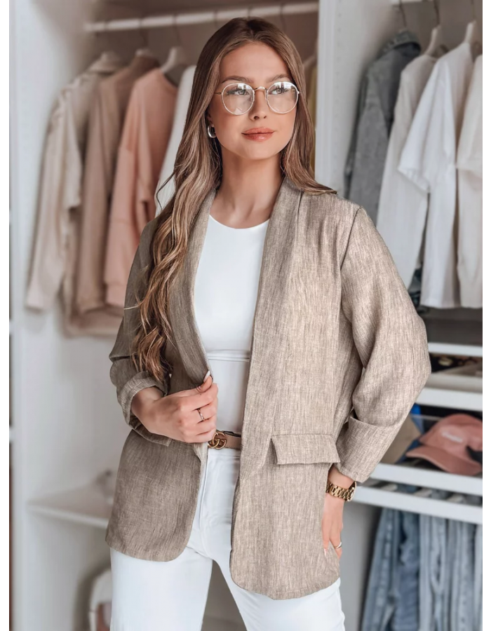 Stylowa marynarka damska oversize o luźnym kroju to propozycja idealna na wiosenne dni. Wykonana z lekkiego materiału, zapewnia komfort i swobodę ruchów. Dekoracyjne klapy imitujące kieszenie z przodu dodają eleganckiego akcentu, a oryginalne rękawy tworzą wyjątkowy look, który z łatwością wpisuje się w wiosenne trendy. Uniwersalny rozmiar pasuje od XS do L. Idealna propozycja na cieplejsze dni.