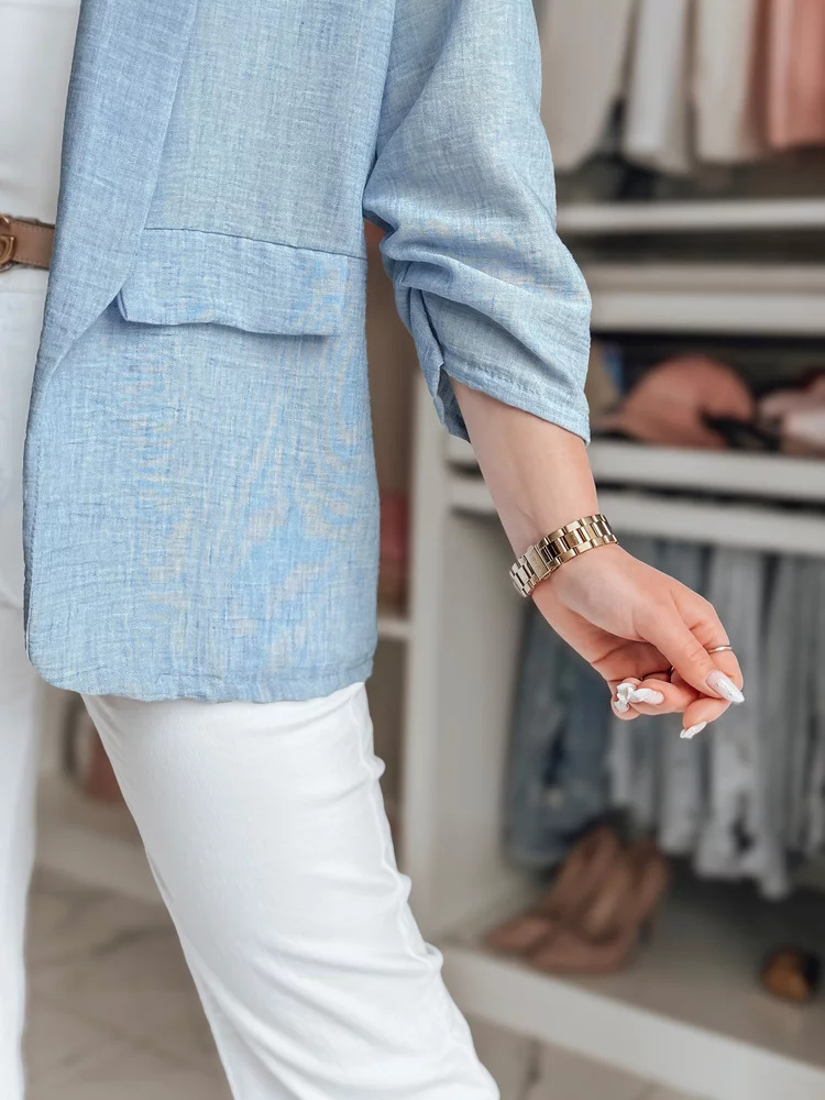 Stylowa marynarka damska oversize o luźnym kroju to propozycja idealna na wiosenne dni. Wykonana z lekkiego materiału, zapewnia komfort i swobodę ruchów. Dekoracyjne klapy imitujące kieszenie z przodu dodają eleganckiego akcentu, a oryginalne rękawy tworzą wyjątkowy look, który z łatwością wpisuje się w wiosenne trendy. Uniwersalny rozmiar pasuje od XS do L. Idealna propozycja na cieplejsze dni.