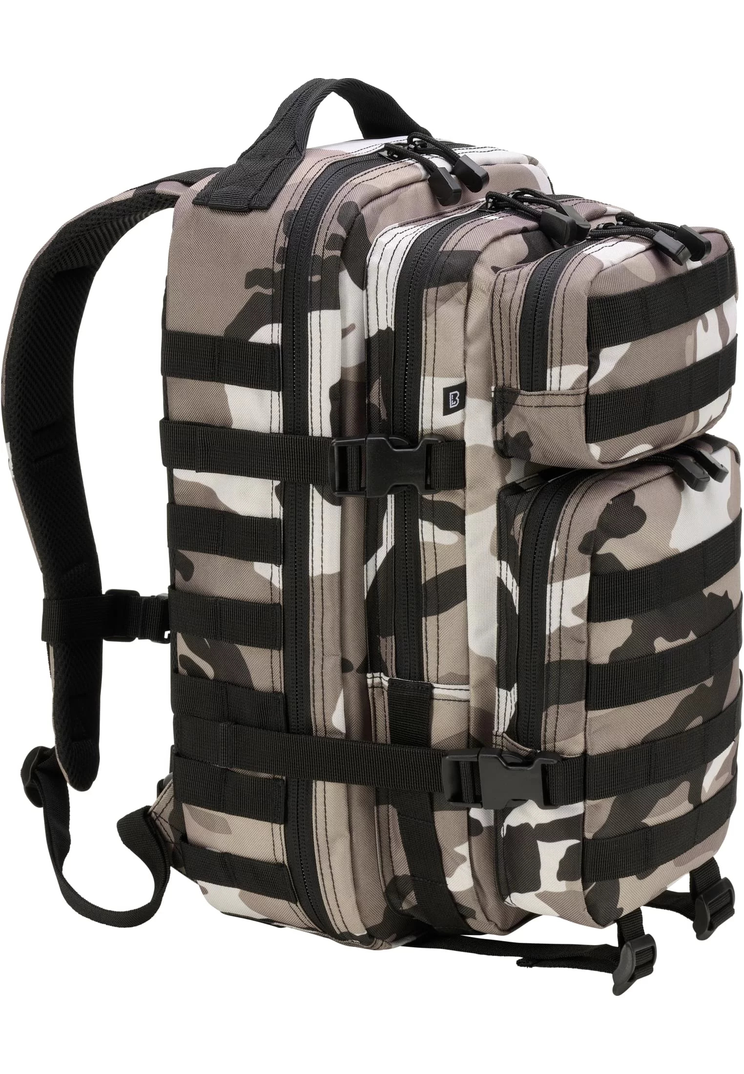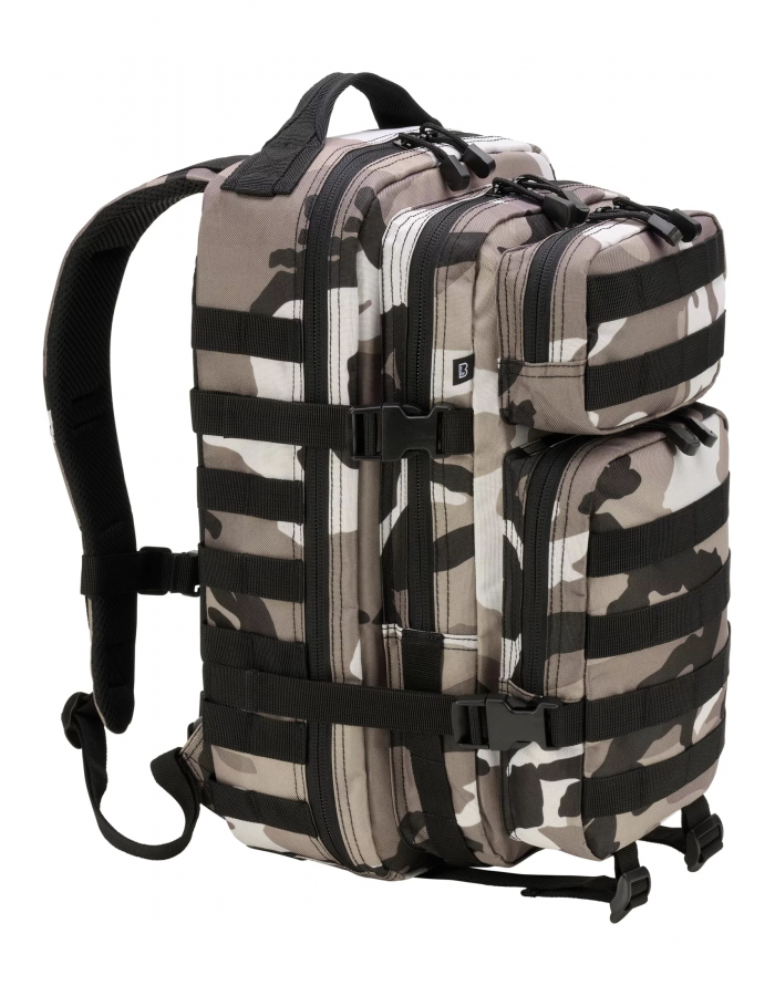 Perfektní denní batoh pro lehké mise - město nebo off-road. Batoh se vyznačuje plně variabilním systémem MOLLE vyvinutým pro armádu a je tedy nastavitelný přesně podle vašich potřeb. Popruhový steh umožňuje připevnění různých doplňků. Důvěřujte osvědčenému systému MOLLE a naučte se ocenit bezkonkurenční výhody také na pěších, trekkingových nebo cyklistických túrách. Vyberte si z klasických barev, jako je černá, velbloudí nebo olivová, nebo použijte naše taktická maskovací komba. Připravte se, jdeme na to!Rozměry: výška 45 cm x šířka 24 cm x hloubka 26 cm Objem: cca. 25 litrů