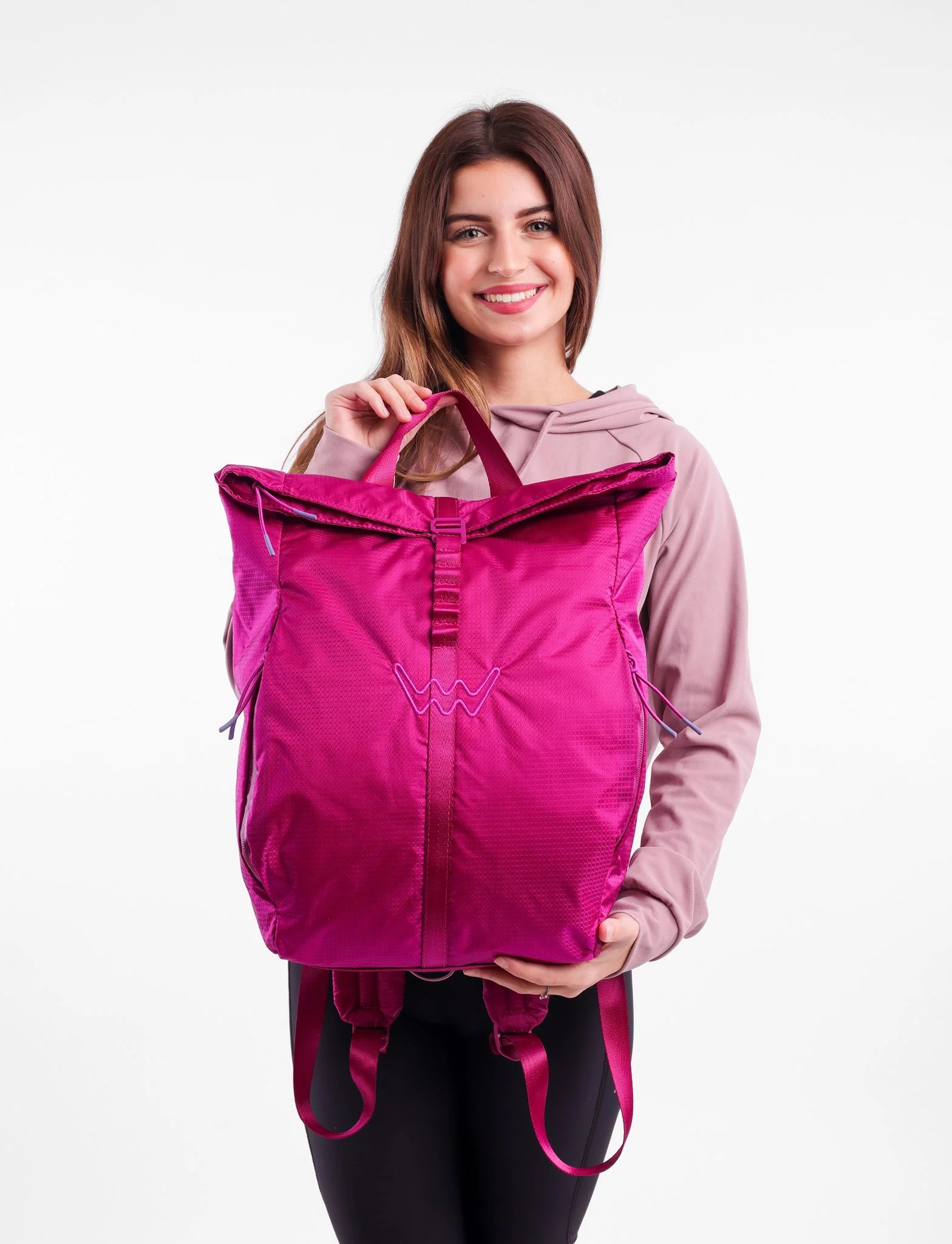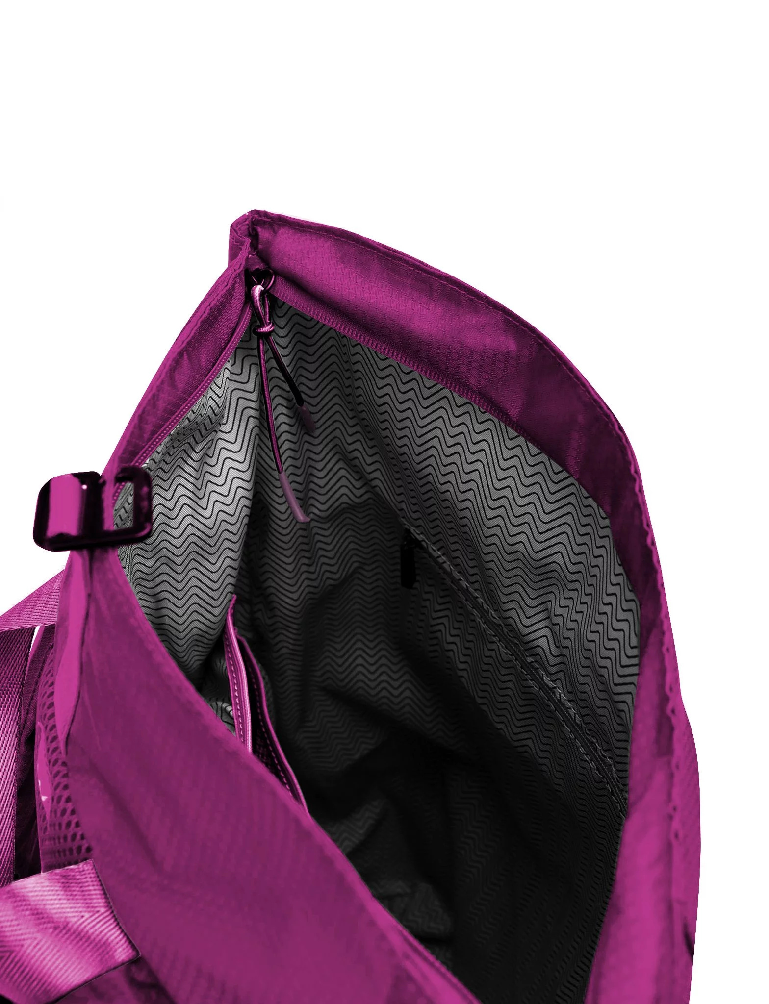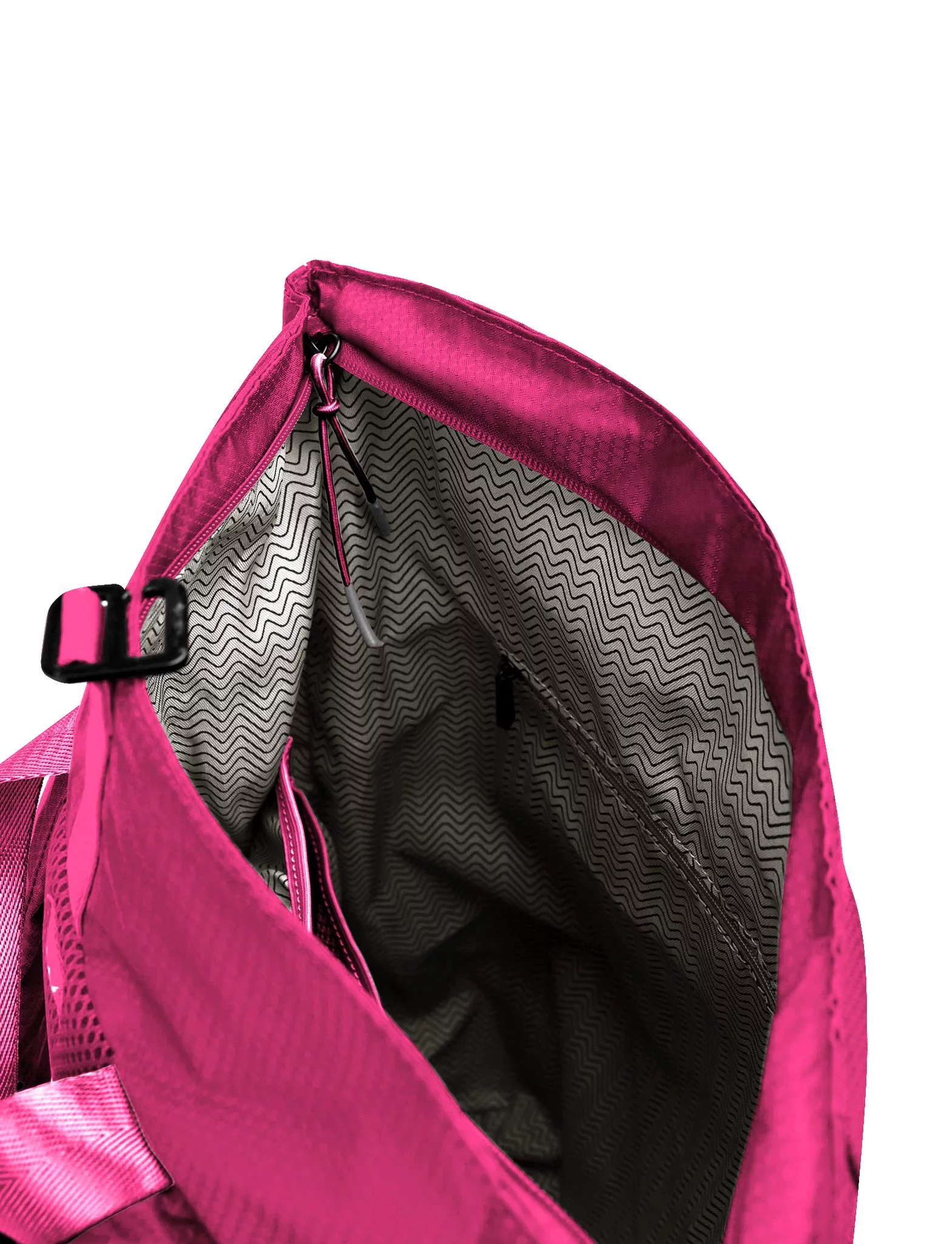 - Hlavní kapsa na zip + přehnutí (více oček na zaháknutí podle naplnění batohu)