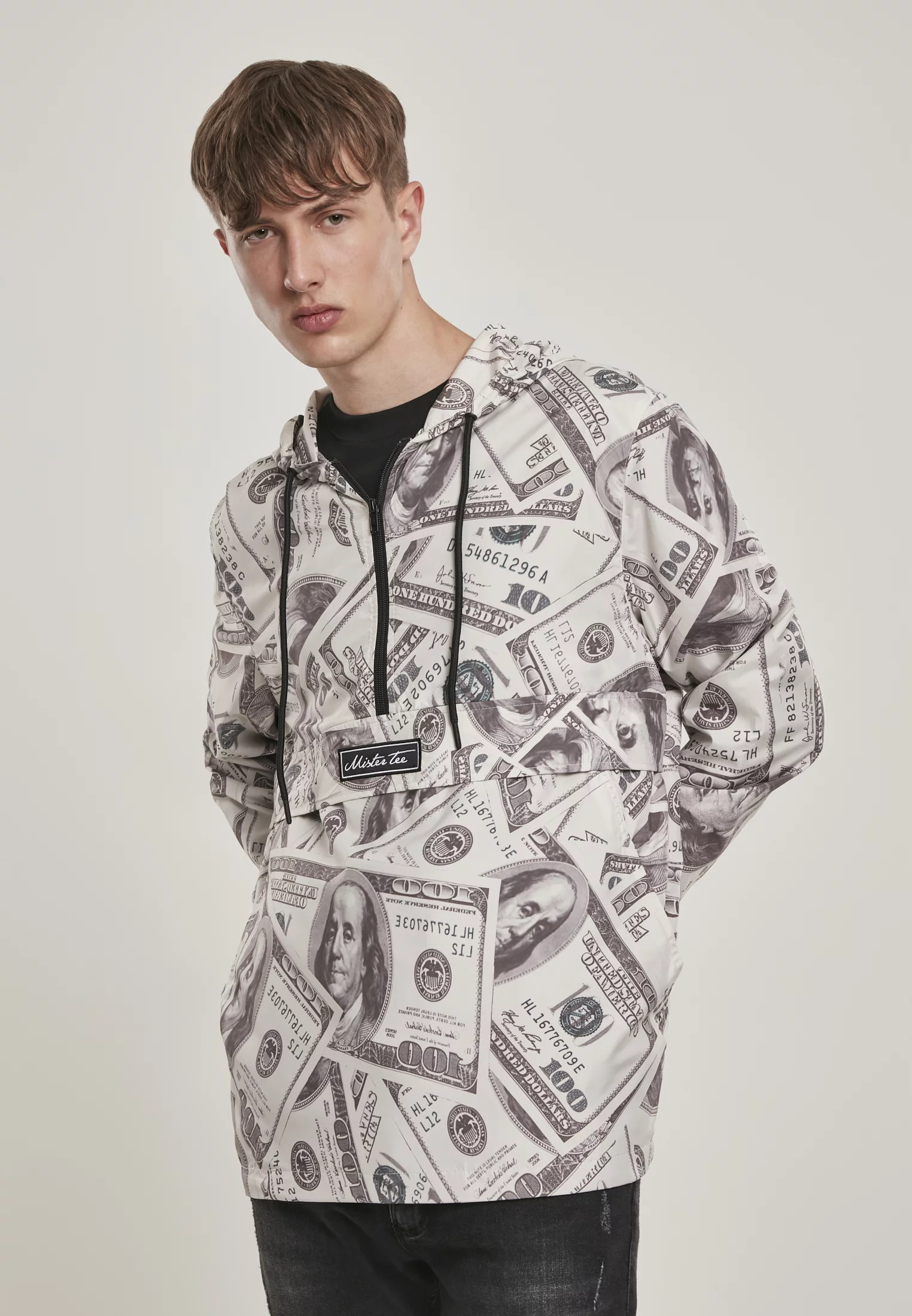 Pro ty, kteří si uvědomili, že svět je jen o penězích, je tu nyní tato skvělá větrovka s potiskem All Over Dollar bill. Skvělý vzhled bundy vděčí nejen potisku, ale také přednímu panelu přes břicho a záda a kontrastnímu zipu a šňůrce na kapuci.