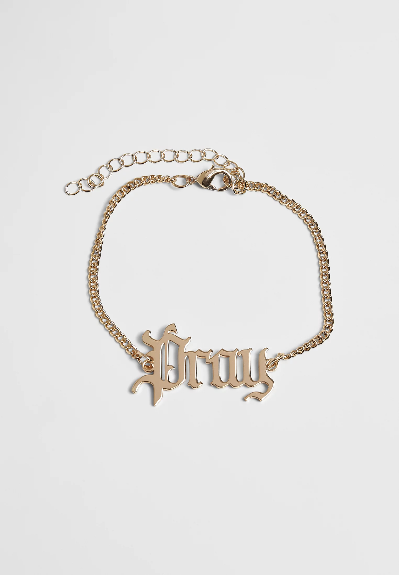 Tento náramek nastavuje svůj styl přes velký přívěsek "Pray", který je integrován do jemného řetízku. Náramek je dostupný ve dvou velikostech – s délkou 18 a 21 centimetrů – a lze jej upravit pomocí prodlužovacího řetízku. Je vyroben z nerezové oceli a železa.