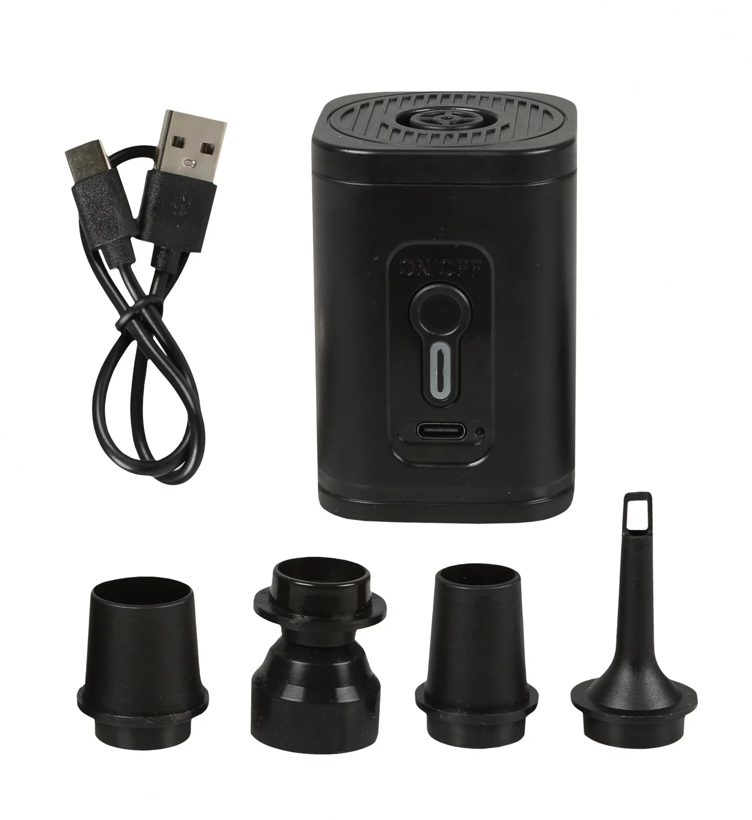 Malá a lehká elektrická pumpa Airflow je praktickou součástí vybavení do kempu, na výlety k vodě i do přírody. Rychle a jednoduše s ní nafoukneš karimatku nebo matraci i dětský bazének. Pohodlně se drží v ruce a nezabere skoro žádné místo v batohu. Nabíjení je jednoduché přes USB-C kabel. Navíc ti pumpa nabízí i možnost vysávání požadovaného předmětu. Vlastnosti: Elektická pumpa s funkcí nabíjené přes USB-C kabel, který je součástí balení. Lehká, s kompaktními rozměry a s 5 různými nástavci. Pumpa disponuje tlakovým i tahovým pohybem. Opatřena je cestovním zámkem. Doba nabíjení: 2 hodiny. Při plném nabití vydrží cca 15 minut