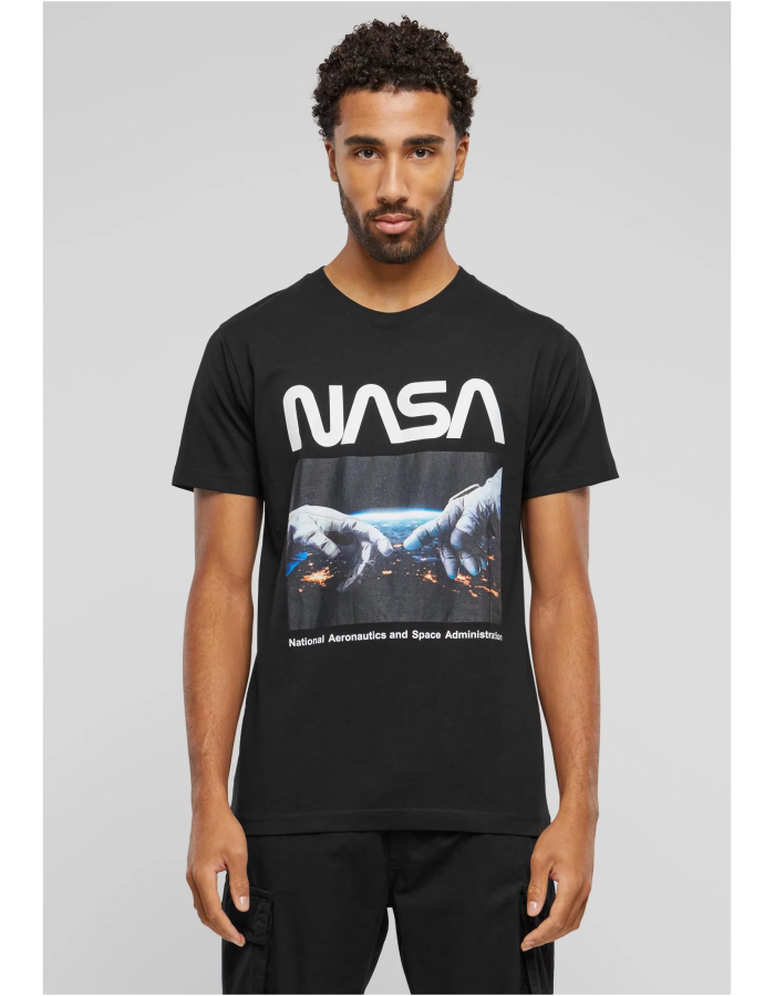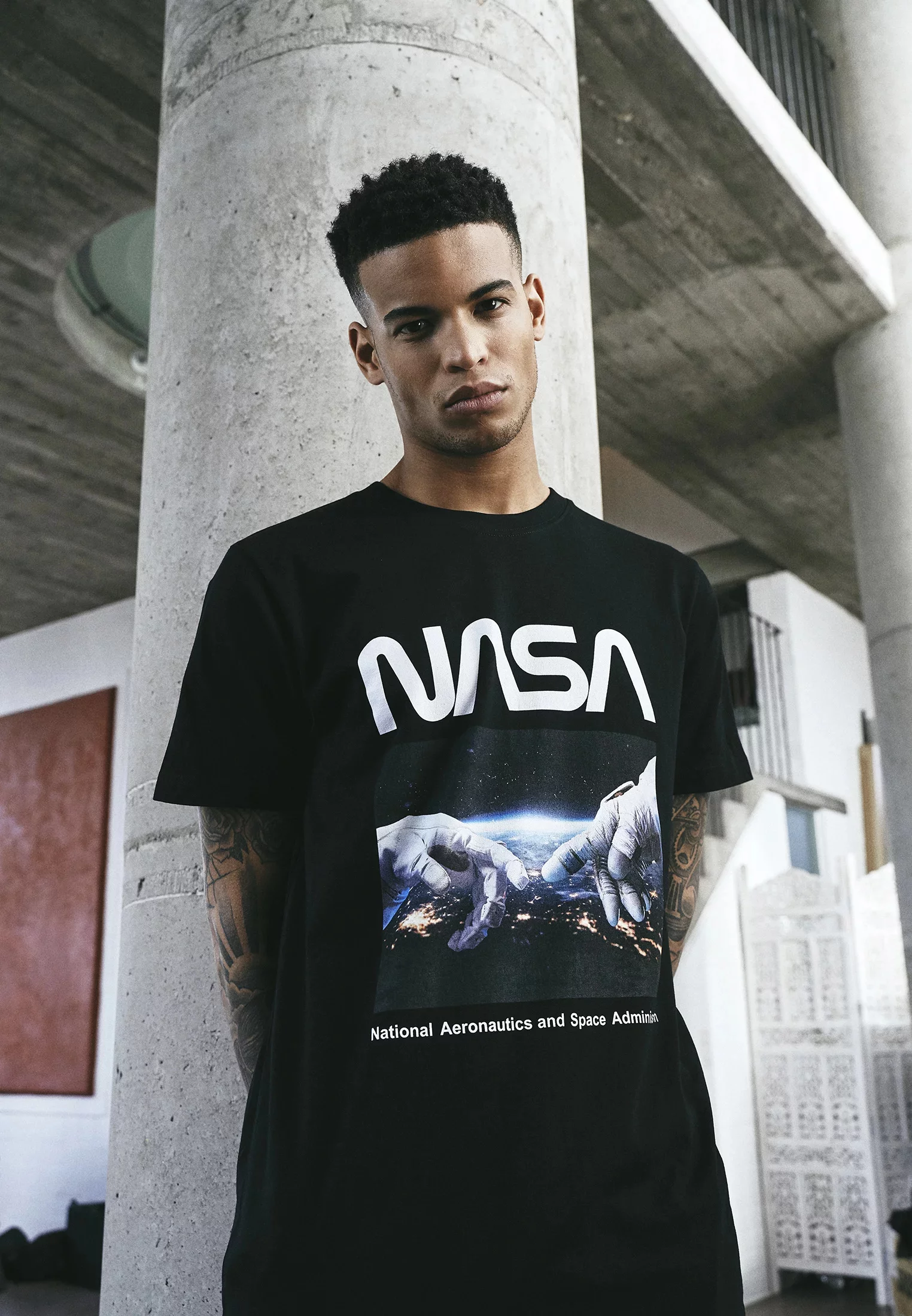 Chcete trochu prostoru? Pak si vezměte toto tričko NASA od Mister Tee. Potisk na přední straně zobrazuje ikonické logo US Space Agency a ruce dvou astronautů, které se téměř navzájem dotýkají ve stylu Boha a Adama před zeměkoulí.