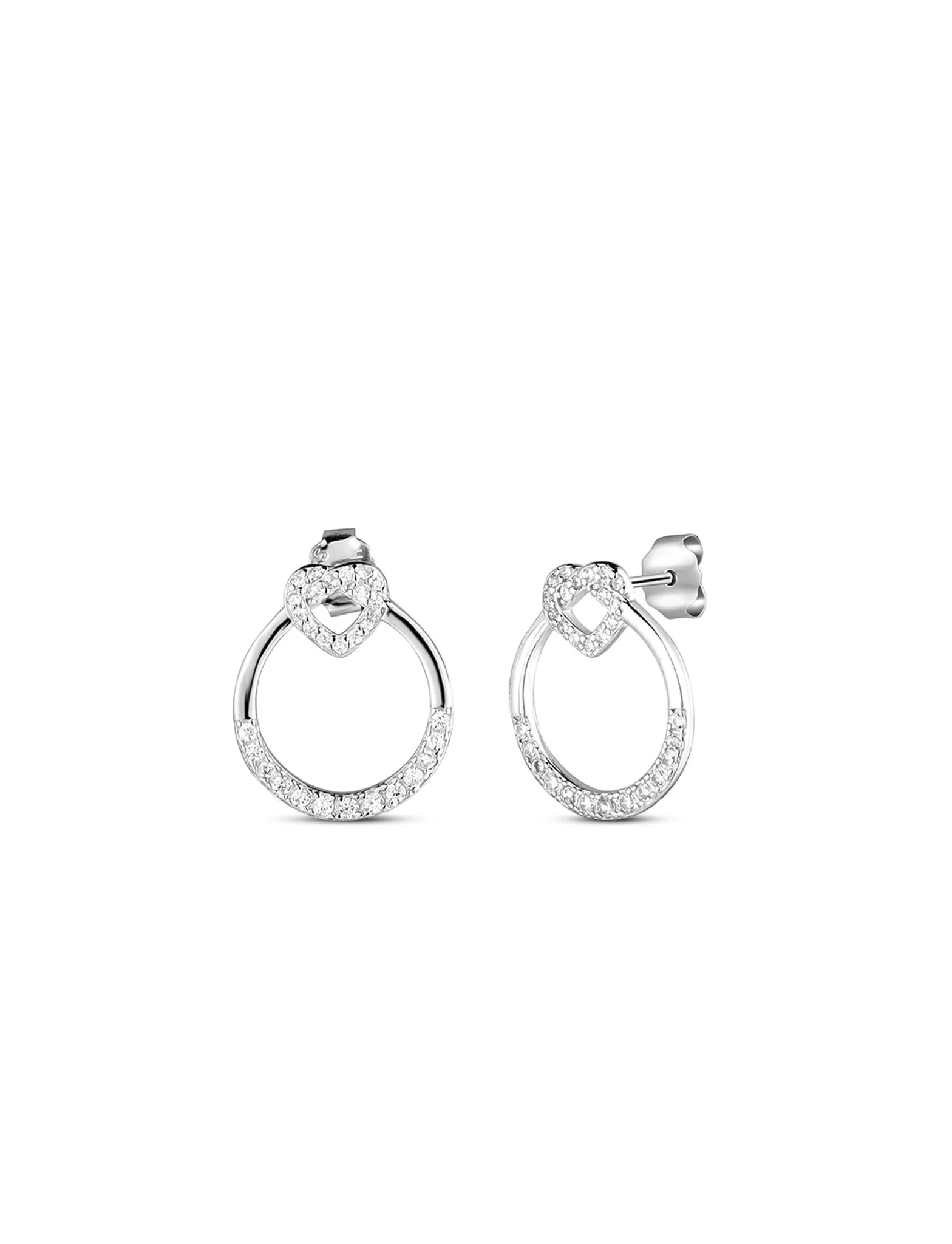 V tomhle ryzím stříbře je odlitá symbolika nikdy nekončící lásky. Spojení zářivého kroužku a něžného srdce jako by hlásalo: Opravdová láska je nekonečná. Prostě dokonalé náušnice pro Tvoji romantickou duši.