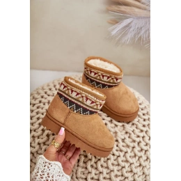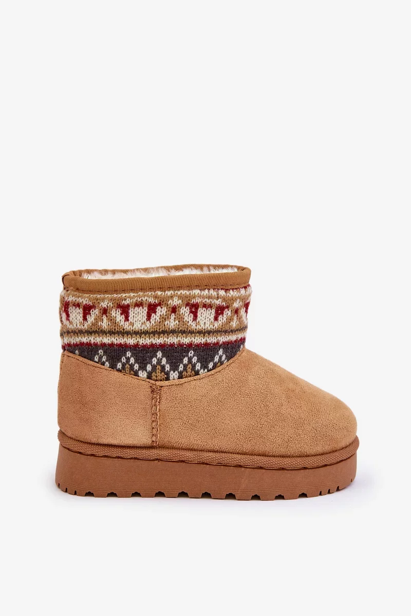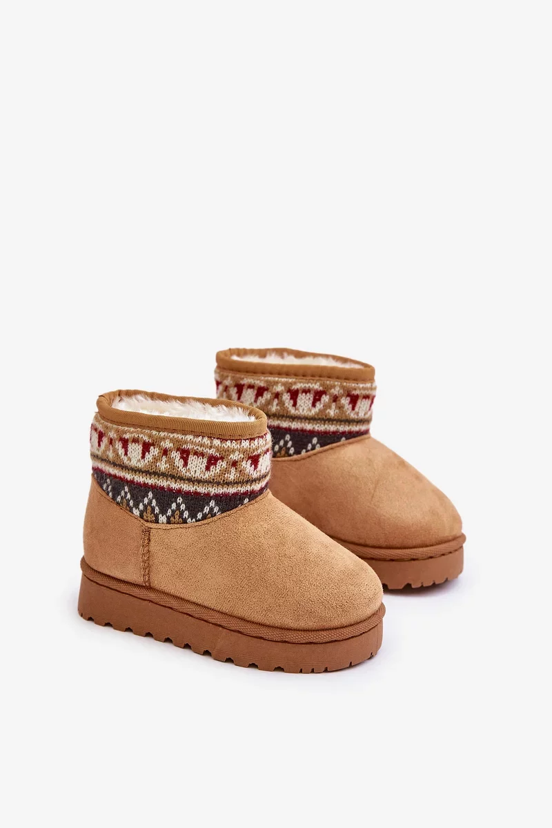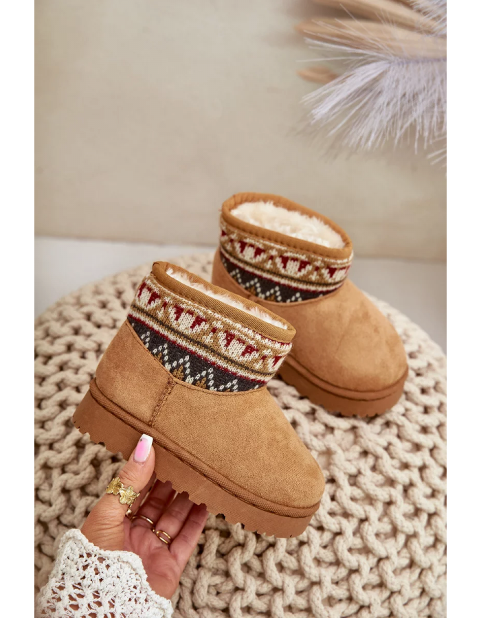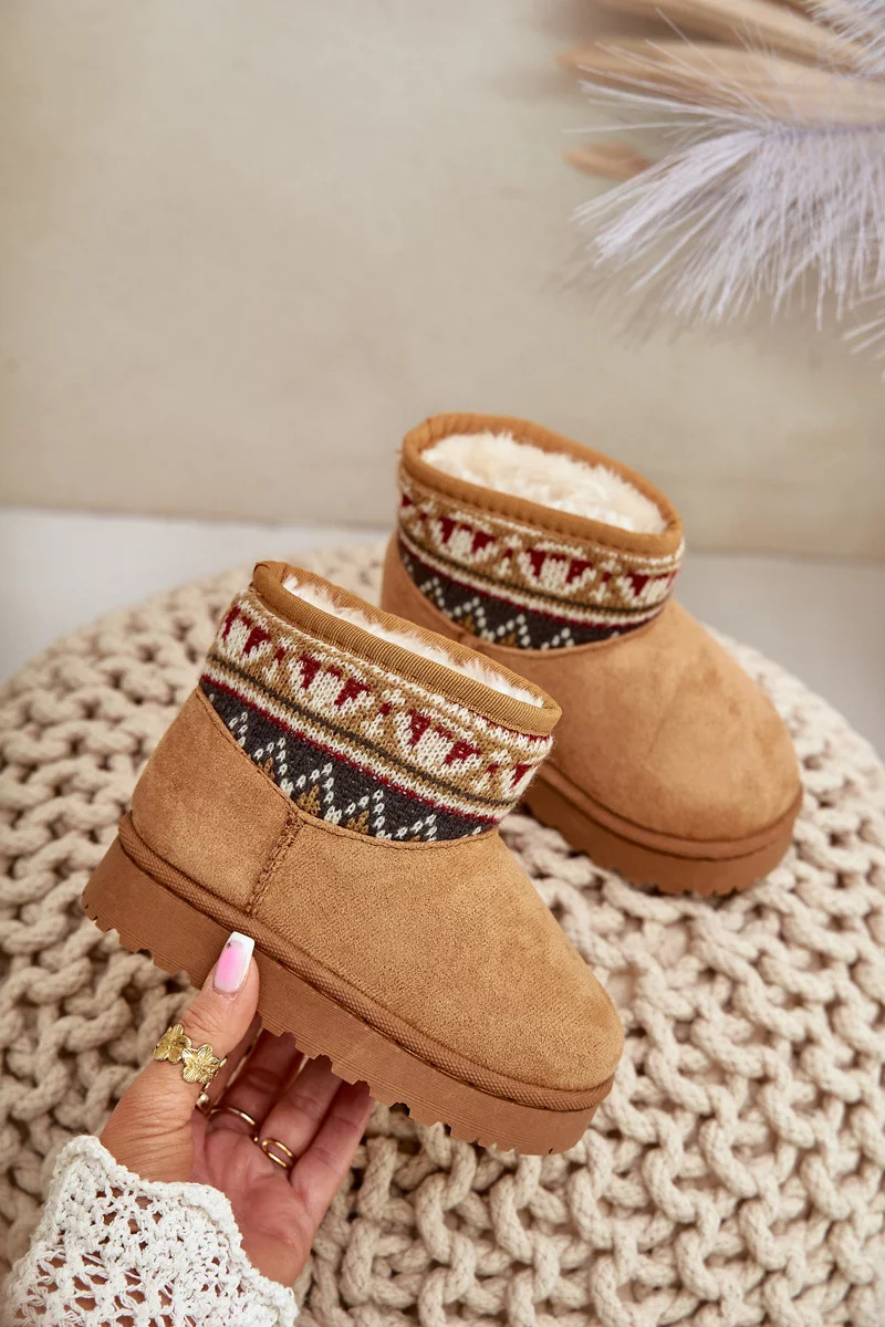 Dětské sněhule vyrobené z eko semiše jsou ideální volbou na zimní dny. Zateplené měkkým kožíškem, zajišťují teplo a pohodlí při nošení. Svršek zdobený vzorovanou vsadkou jim dodává módní charakter. Nazouvací střih usnadňuje rychlé obouvání, což z nich činí praktickou a stylovou obuv na chladné dny.