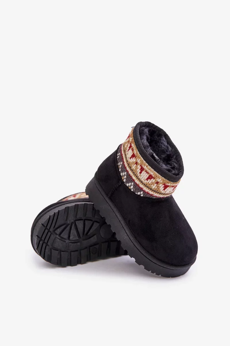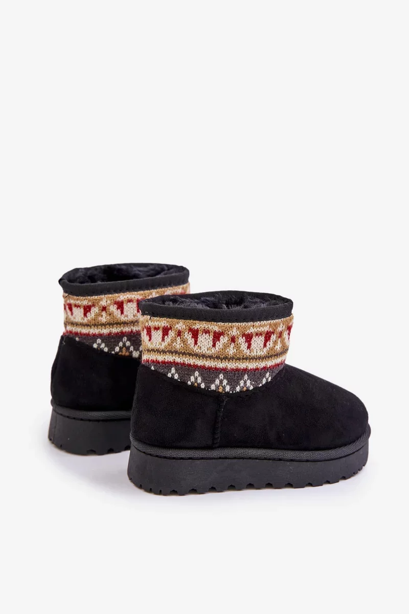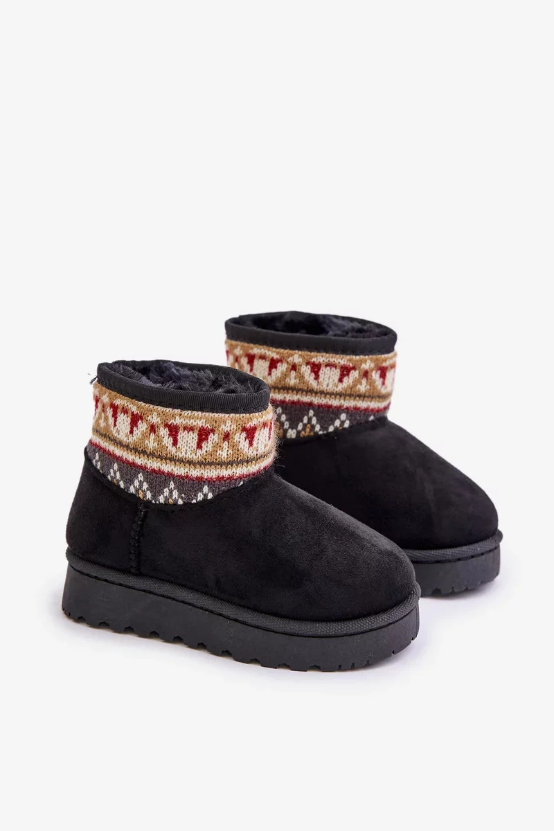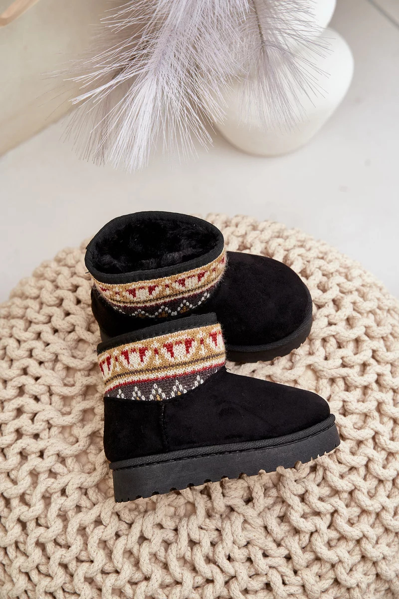Dětské sněhule vyrobené z eko semiše jsou ideální volbou na zimní dny. Zateplené měkkým kožíškem, zajišťují teplo a pohodlí při nošení. Svršek zdobený vzorovanou vsadkou jim dodává módní charakter. Nazouvací střih usnadňuje rychlé obouvání, což z nich činí praktickou a stylovou obuv na chladné dny.