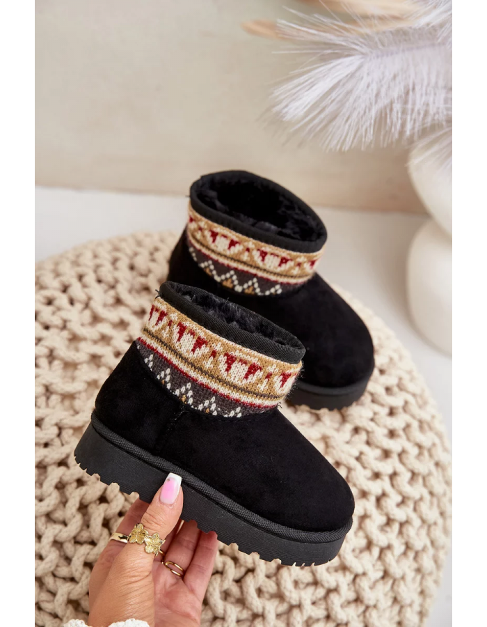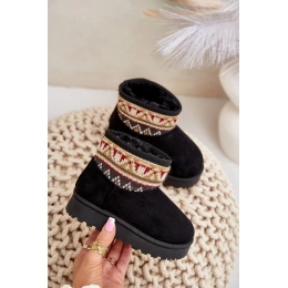 Nazouvací Dětské Sněhule se Vzorem Zateplené Kožíškem Černé Mirirae 32