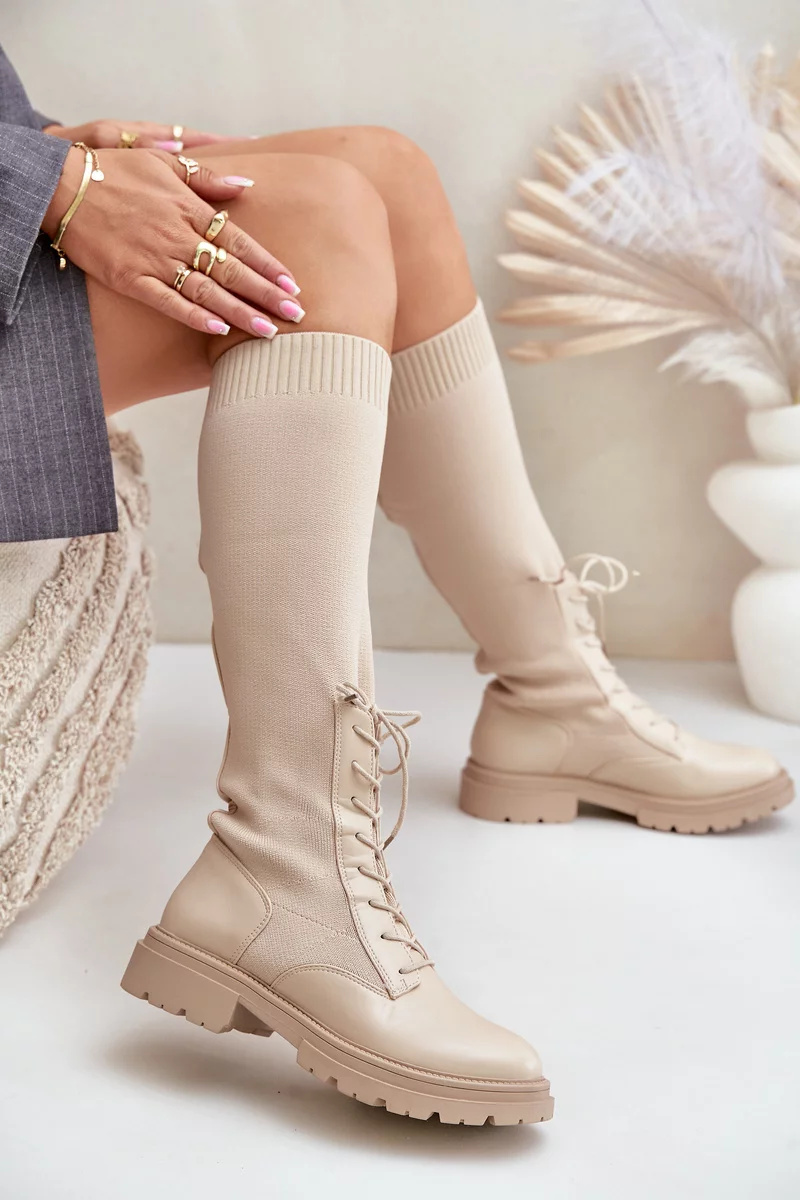 Nazouvací kozačky s ponožkovým svrškem béžové Iranel 36