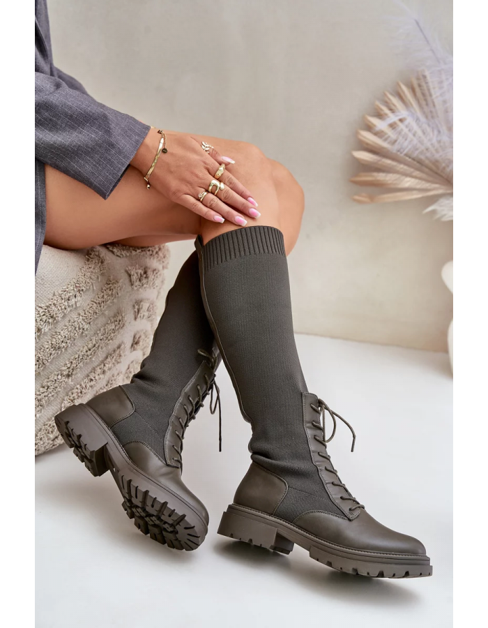 Nazouvací kozačky s ponožkovým svrškem tmavě zelené Iranel 38