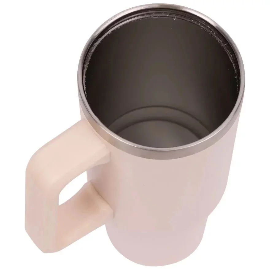 Tento hrnek je vybaven praktickou rukojetí a průhledným plastovým víčkem, které lze snadno odejmout pro čištění nebo rychlé usrkávání na cestách.