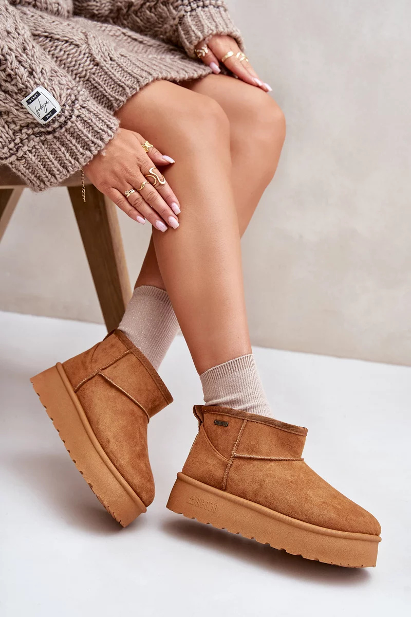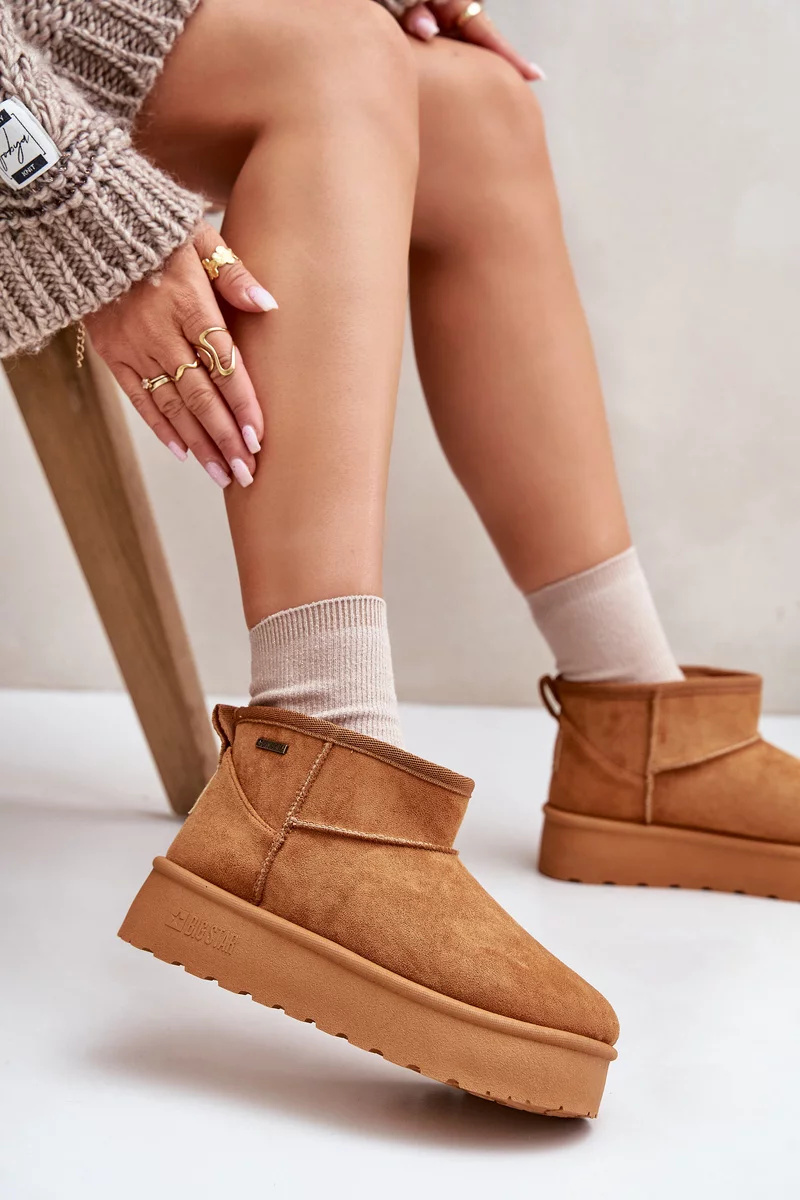 Nízké dámské sněhule od Big Star jsou stylová a funkční obuv na zimní dny. Osazené na módní platformě, poskytují nejen pohodlí, ale také dodatečnou ochranu před chladem. Zateplený interiér zaručuje teplo a pohodlí, což z nich činí ideální volbu pro mrazivé dny. Ideální pro každodenní stylizace! Při výběru velikosti se prosím řiďte tabulkou velikostí.