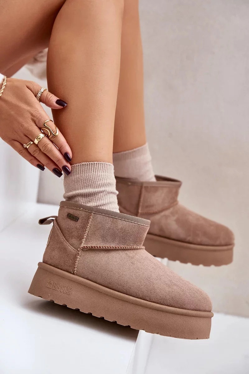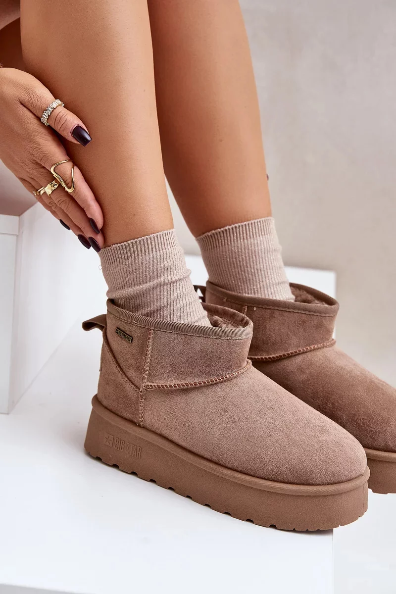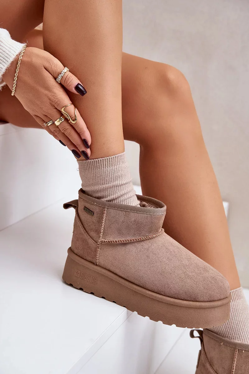 Nízké dámské sněhule od Big Star jsou stylová a funkční obuv na zimní dny. Osazené na módní platformě, poskytují nejen pohodlí, ale také dodatečnou ochranu před chladem. Zateplený interiér zaručuje teplo a pohodlí, což z nich činí ideální volbu pro mrazivé dny. Ideální pro každodenní stylizace! Při výběru velikosti se prosím řiďte tabulkou velikostí.