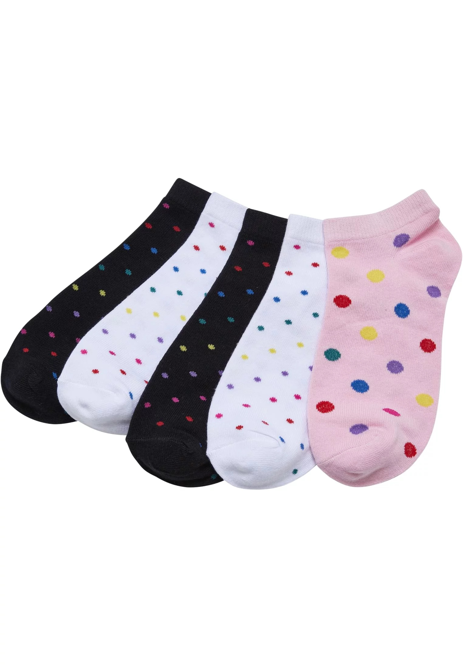 Sada botiček obsahuje pět párů různých barev. Každý pár je pravidelně tečkovaný duhovými tečkami. Poddajný materiál z bavlny, polyesteru a elastanu a úzké elastické manžety nabízejí osvědčený komfort nošení. Sada patek je k dispozici ve čtyřech různých velikostech.