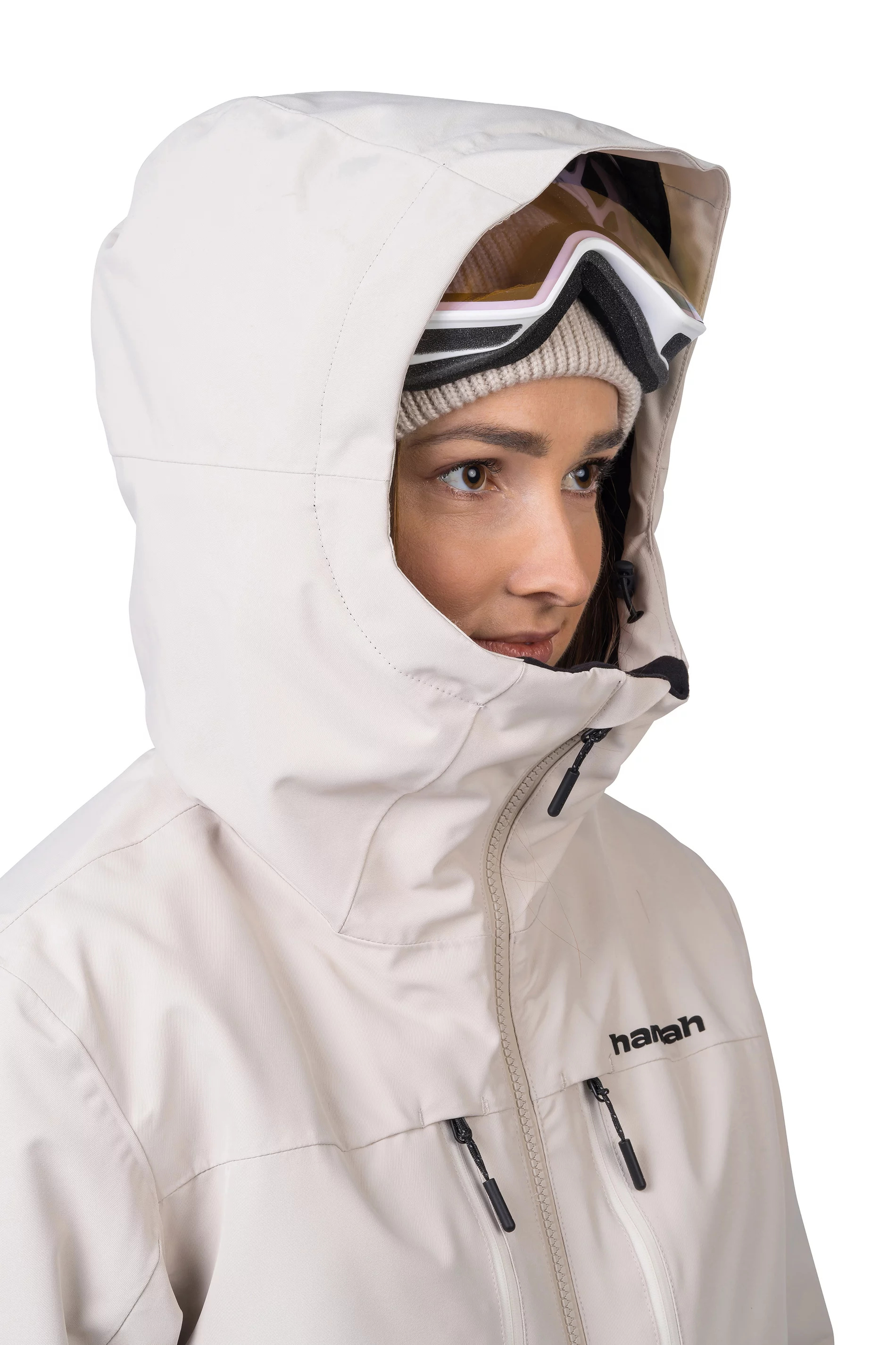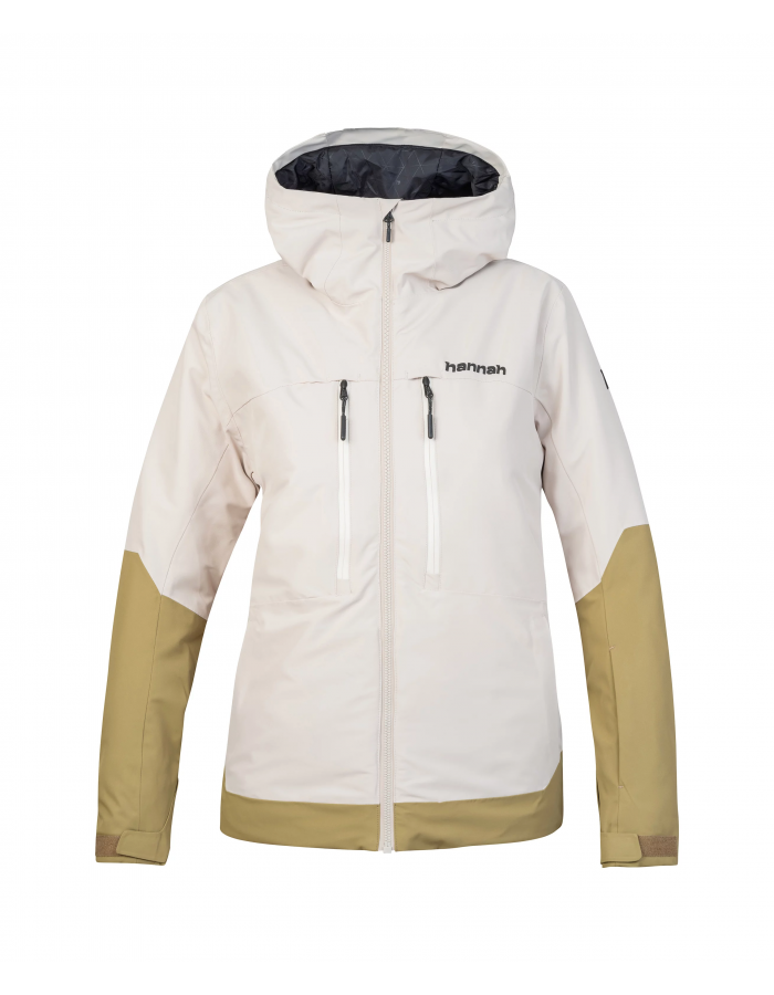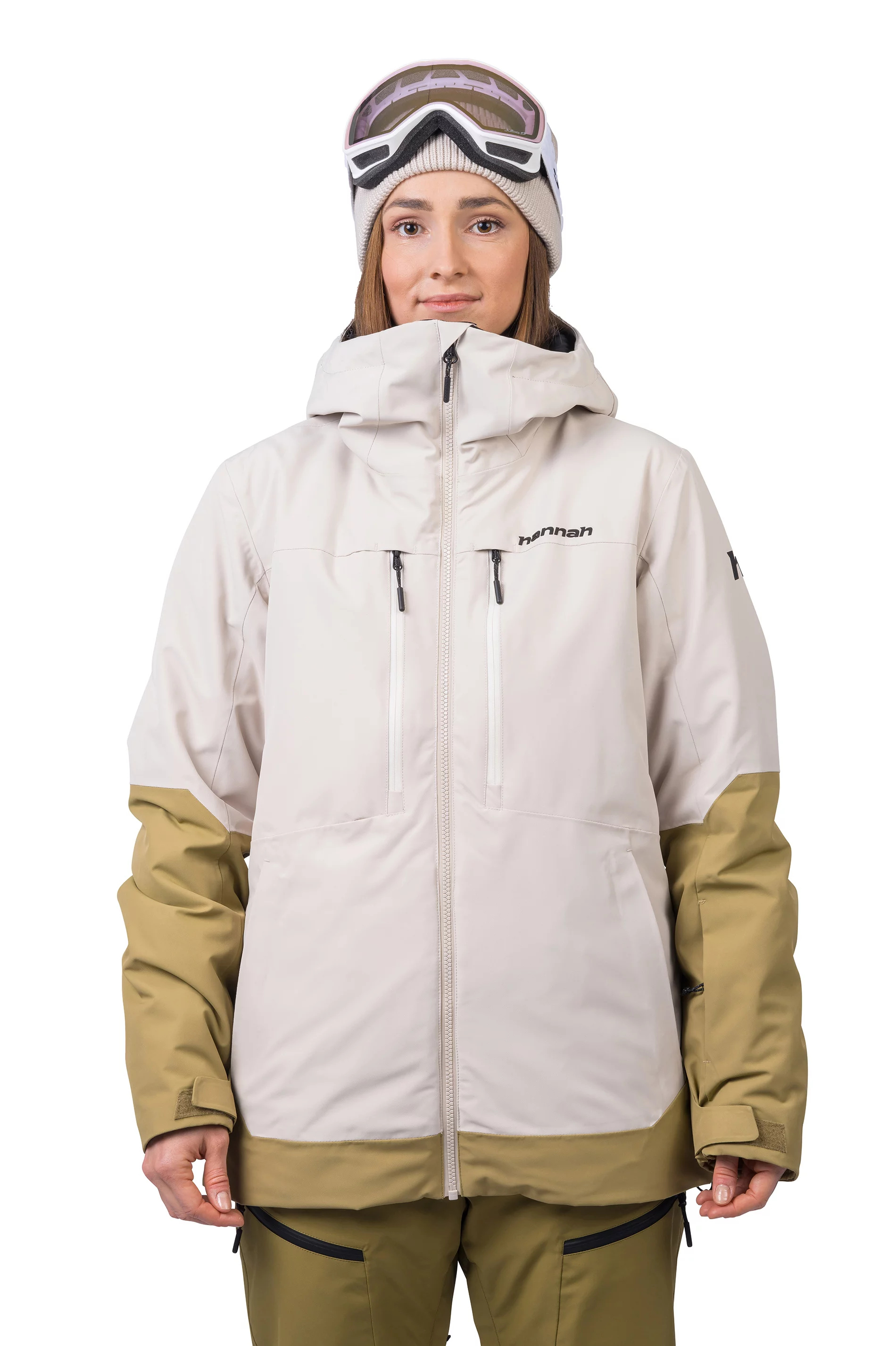 Lyžařská bunda v technickém střihu má pružný materiál ošetřen svrchní vodoodpudivou úpravou. Membrána Climatic Element s parametry 10 000mm vodní sloupec a 10 000 prodyšnost tě spolehlivě ochrání proti promoknutí při zachování prodyšnosti. O tepelnou izolaci se postará materiál Duratherm Pro, který zaručí optimální komfort a funkčnost i za vlhka. Bunda má skvělou výbavu od voděodolných YKK zipů na centrálním zipu a hrudních kapsách, dále odvětrání v podpaží, vnitřní systém kapes a sněhový límec v pase. Anatomicky tvarované rukávy s kapsou na zip na skipas jsou zakončené stahováním patkou se suchým zipem. Vnitřní elastické rukávové manžety s otvorem na palec snižují únik tepla a zároveň zajistí, aby sníh zůstal tam kde má. Systém propojení bundy a kalhot umožňuje snadné připnutí lyžařských kalhot Hannah Soren.