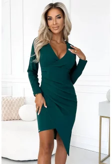 Elegantní šaty s překládaným výstřihem Numoco KELLY - zelené